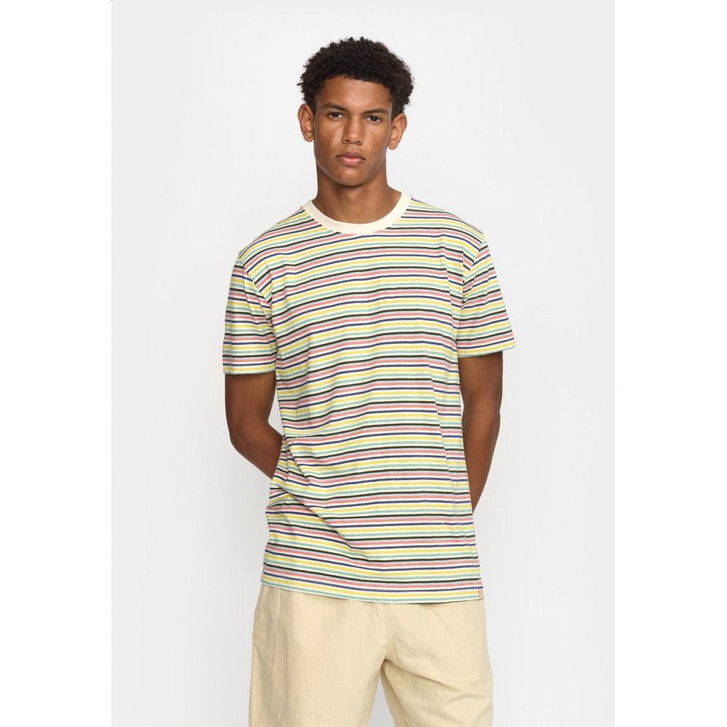 Le T-shirt Revolution 1383 Regular est un modèle de T-shirt décontracté et basique conçu pour une utilisation quotidienne. Ce T-shirt à manches courtes est réalisé en 100% coton organique, offrant une respirabilité et un confort optimal. Le design multicolore, qui alterne entre le jaune, le vert, le bleu, le rose et le blanc, lui confère un aspect polyvalent et adapté à diverses occasions, qu'il s'agisse de loisirs, de travail ou de la vie quotidienne. La conception simple et sobre de ce T-shirt, avec un col rond et des manches courtes, en fait un choix idéal pour les hommes qui recherchent un vêtement de base pratique et confortable.
