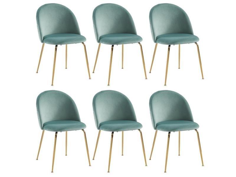 Vente-unique, Lot de 6 chaises - Velours et métal doré - Vert sauge - MELBOURNE