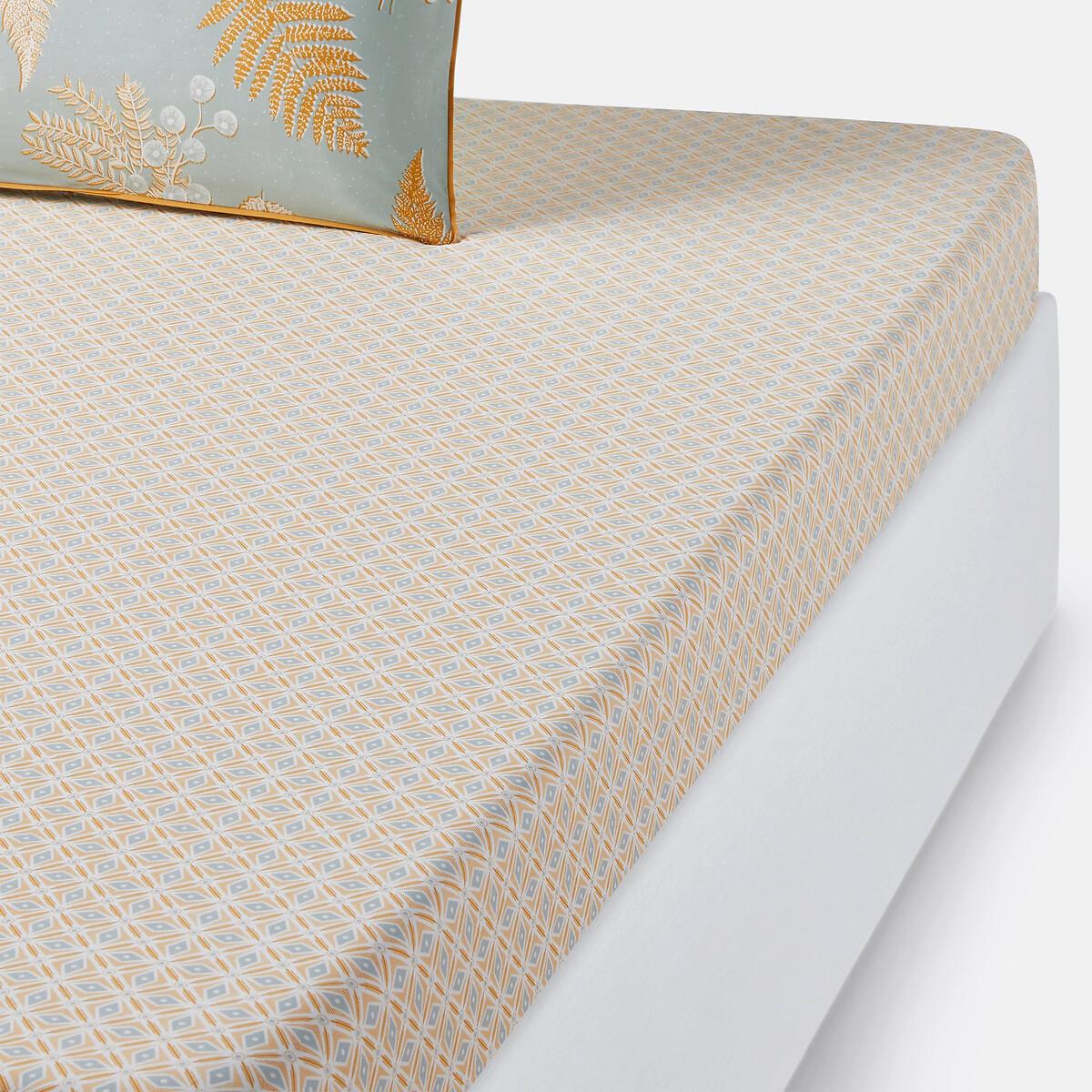Le drap housse Fougère présente un motif imprimé botanique dans une palette de couleurs subtile et apaisante. La percale de coton offre une agréable sensation de fraîcheur et de légèreté. Son tissage serré la rend particulièrement douce pour un confort premium. C'est une matière lisse et mate qui s'assouplira au fil des lavages.