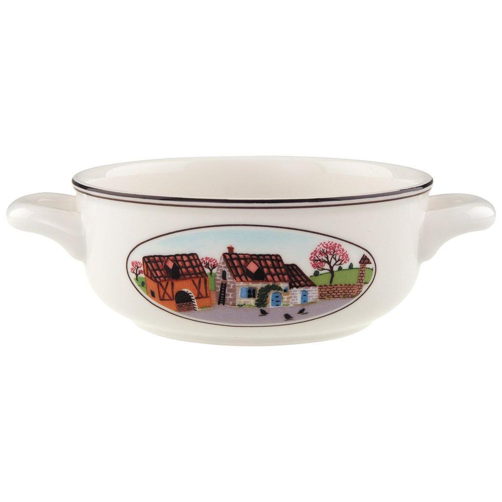 Motifs villageois et charme romantique de la ferme dans des paysages pittoresques : la collection Design Naif de Villeroy & Boch séduit par des scènes de la vie rurale au design soigné. Ses différentes pièces de vaisselle constituent chacune de véritables joyaux sur la table. Le décor simple et plein de fantaisie dans le style de la peinture naïve est né de la main de lartiste corse Gérard Laplau. Depuis 1748, lentreprise traditionnelle Villeroy & Boch fabrique de la porcelaine répondant aux exigences les plus élevées. Dans cette tasse à soupe élégamment idyllique, vous pouvez servir un bouillon, un potage ou une soupe crémeuse en entrée ou en plat principal. Elle attirera lattention sur nimporte quelle table. Surprenez vos invités avec la vaisselle de Villeroy & Boch. Convient naturellement au lave-vaisselle et au four à micro-ondes.