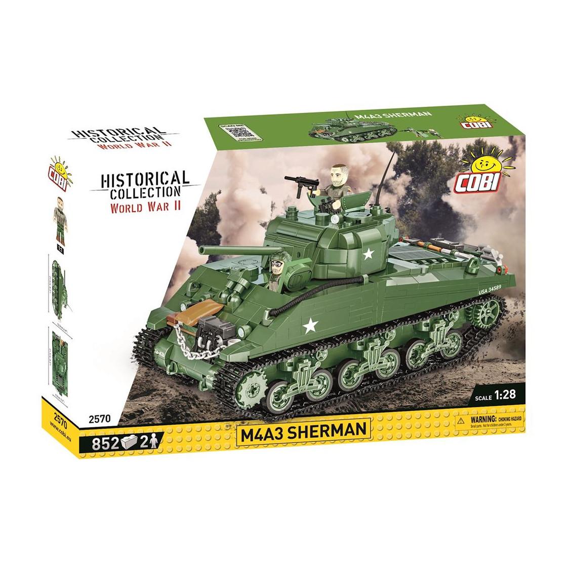 Der M4 Sherman ist der bekannteste amerikanische Mittel-Panzer des Zweiten Weltkriegs, gefertigt zwischen 1942 und 1945. Er war mit einer 75-mm-Kanone ausgestattet und wurde über 49.000 Mal in verschiedenen Versionen produziert. Die detaillierte Blockversion im Massstab 1:28 enthält bewegliche Teile, ein funktionierendes Kettensystem und hochwertig bedruckte Elemente, die auch intensiven Spielbedingungen standhalten.