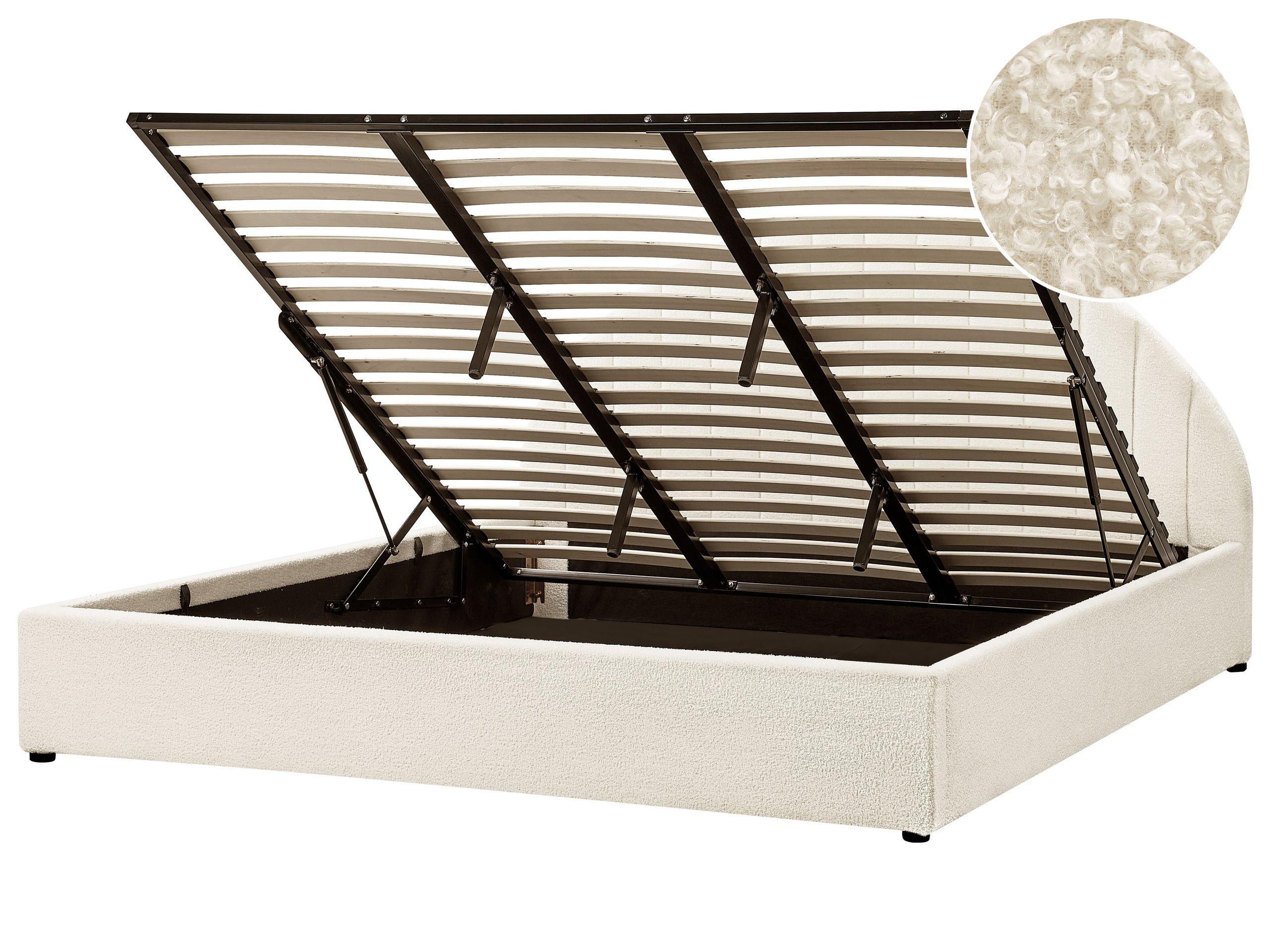 Lit de rangement minimaliste avec tête de lit. Transformez votre chambre à coucher avec ce lit moderne et minimaliste qui allie style et fonctionnalité sans effort. Tapissé d'une élégante bouclette douce, il ajoute une touche de sophistication tout en garantissant le confort. Sous le matelas se trouve un compartiment de rangement caché, idéal pour ranger la literie et les objets essentiels. Ce design polyvalent s'accorde avec différents styles de décoration, ce qui en fait un complément idéal pour toute chambre à coucher.