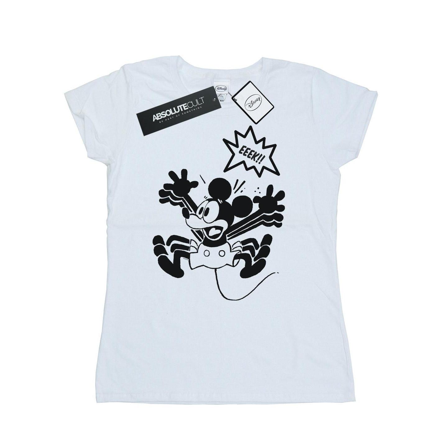 Ce T-shirt présente un graphique ludique de Mickey Mouse avec le mot « EEEK!! » dans une bulle de dialogue. Le col rond classique et les manches courtes en font un ajout polyvalent à toute garde-robe décontractée.