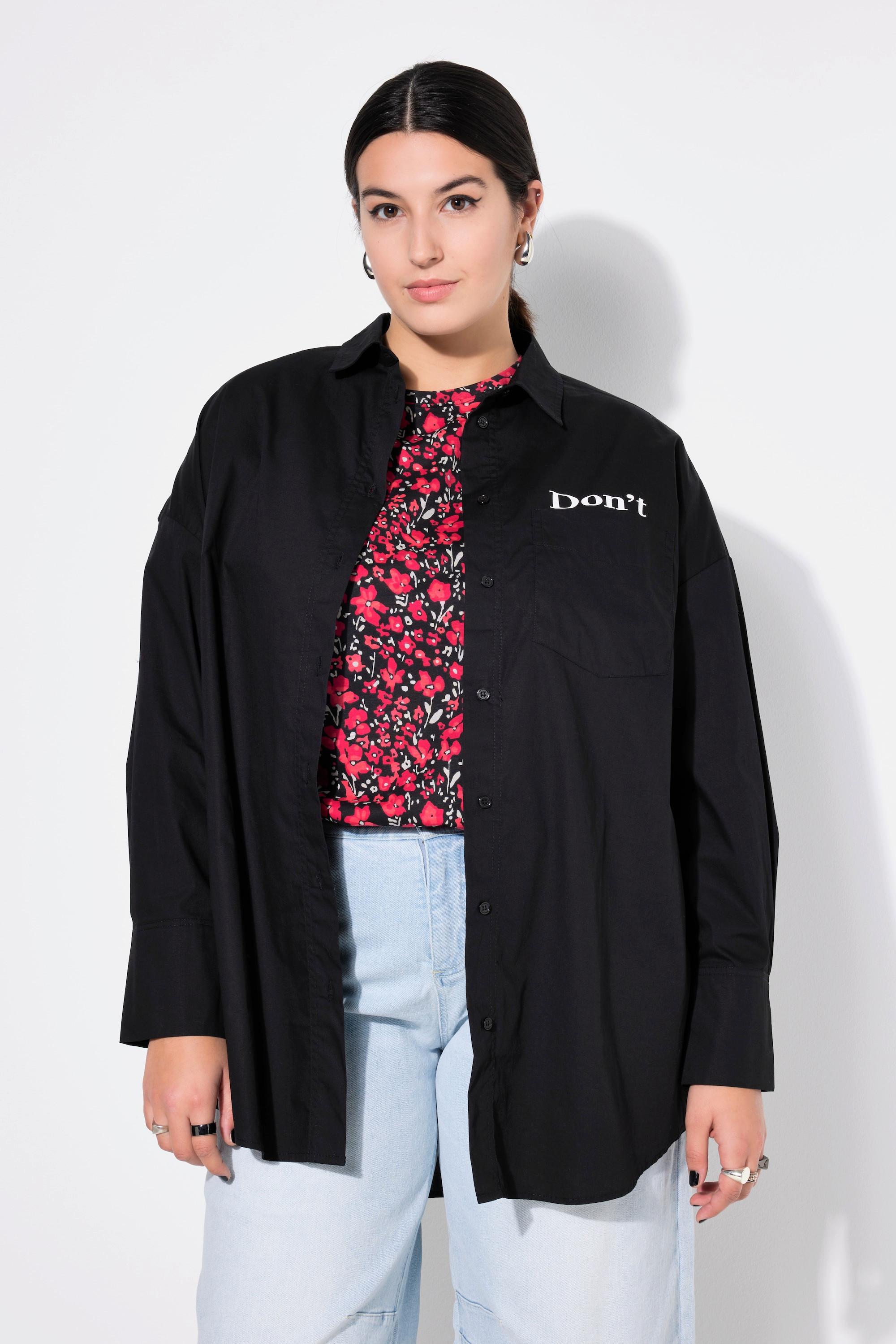 Ce chemisier présente une coupe Boxy pour une silhouette décontractée et moderne. Il est doté d'un col Kent classique et de manches longues. Le design est rehaussé d'un imprimé graphique distinctif dans le dos, ajoutant une touche unique au vêtement.