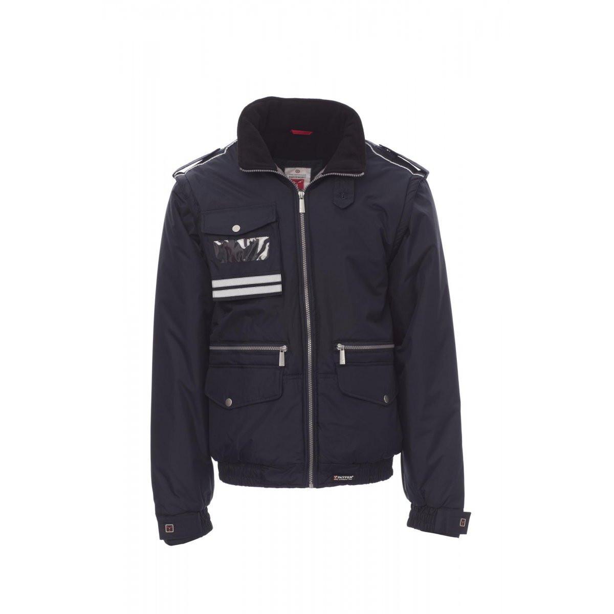 Ce blouson pour homme est doté de manches détachables et d'un design informel à effet élancé. Il comprend une fermeture éclair en plastique avec un curseur en métal, une capuche pliable dans le col, une taille élastique et des poignets réglables. Des épaulettes et une fermeture au col apportent des détails supplémentaires. La veste est équipée de deux poches LOCK SYSTEM, de deux poches zippées et d'une poche porte-badge réversible. Un passepoil réfléchissant sur les épaules et un double passepoil réfléchissant sur la poche poitrine et au dos améliorent la visibilité. L'intérieur est rembourré avec une doublure haute densité argentée, un dos en micropolaire, un col en polaire et une poche intérieure.