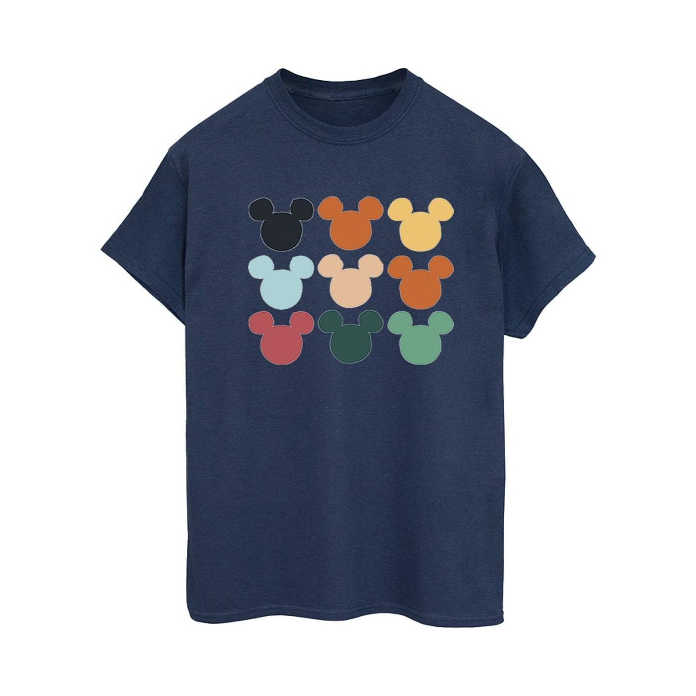Ce T-shirt présente un col ras-du-cou classique et des manches courtes, offrant une coupe confortable et polyvalente. Le devant est orné d'une grille ludique de silhouettes de têtes de Mickey Mouse de différentes couleurs, ajoutant une touche de charme iconique au design.