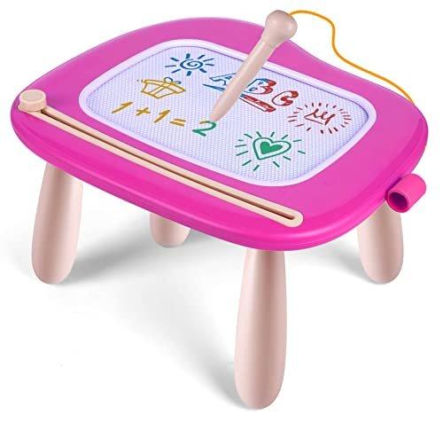 Activity-board  Jouets pour enfants à partir de 1 an, tableau de peinture magnétique, tableau magique, planche à dessin colorée, tableau magnétique avec 4 pieds pour jouets d'enfants (rose)