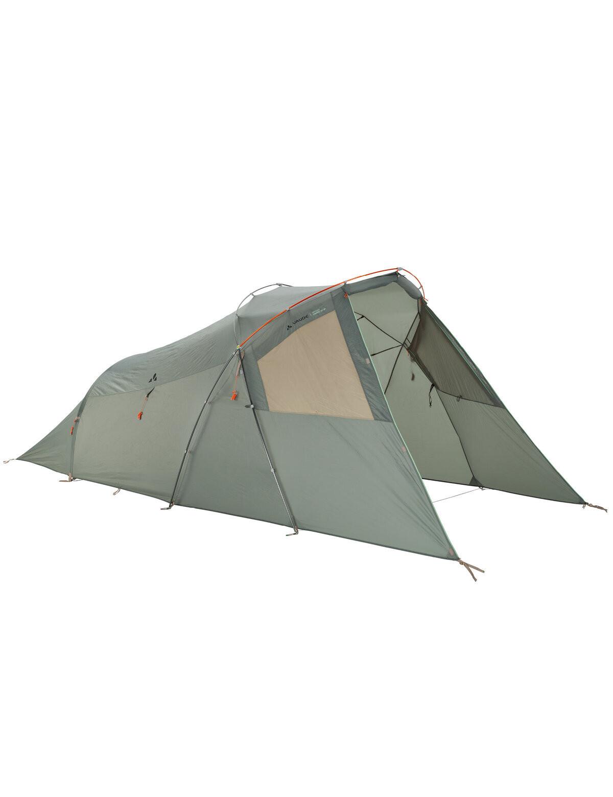 La tente Allround Chapel XT pour 3 personnes atteint une hauteur maximale de 180 centimètres dans le vestibule et offre ainsi suffisamment d'espace pour se changer aisément ou pour mettre des vélos à l'abri. Des repères colorés et des pièces en plastique pour la réception de l'armature facilitent le montage. Deux lucarnes de ventilation offrent une vue sur l'extérieur. Il est possible d'enrouler la paroi arrière au niveau des pieds jusqu'à l'arceau pour obtenir une bonne ventilation lors des nuits et jours très chauds et sans pluie. Il s'y trouve également une aération protégée contre la pluie et réglable en continu. Le porche avant s'ouvre aisément en station debout à l'aide d'un hauban. La tente 3 personnes est munie d'une armature DAC haut de gamme en aluminium, d'une corde à linge et de deux poches à l'intérieur de la tente. Le label Green Shape de VAUDE garantit un produit écologique, fonctionnel et fabriqué dans des matériaux durables.