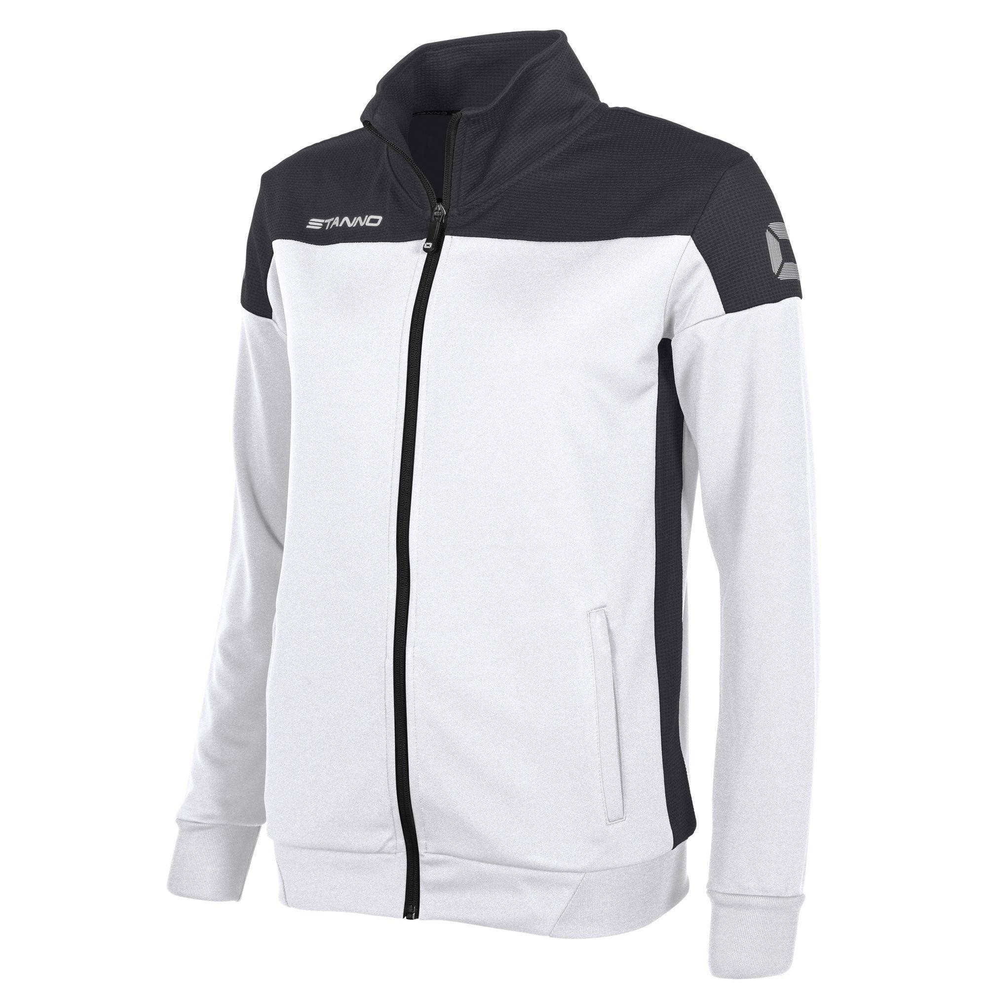 Cette veste élégante à la coupe féminine est idéale pour être portée avant et après l'exercice ou pendant l'échauffement. La veste fait partie de la collection Stanno Pride. Elle possède deux poches zippées sur le devant et des poignets ajustés en tissu côtelé élastique. Le tissu en maille respirante sur les épaules et les côtés rend la veste légère et aérée. La taille est également finie par un ourlet côtelé élastique, ce qui garantit un ajustement optimal.
