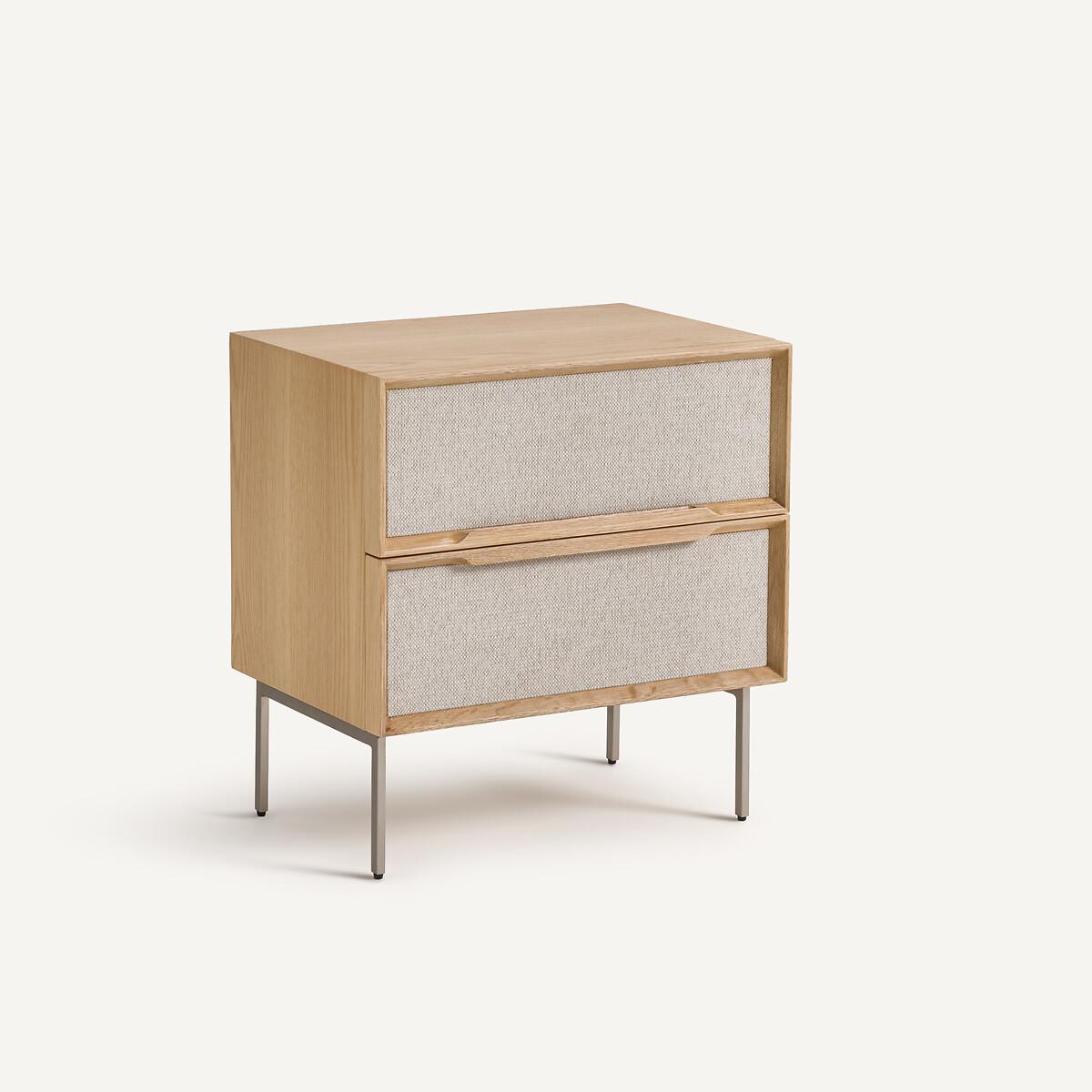 AM.PM Chevet 2 tiroirs plaqué chêne tissu texturé