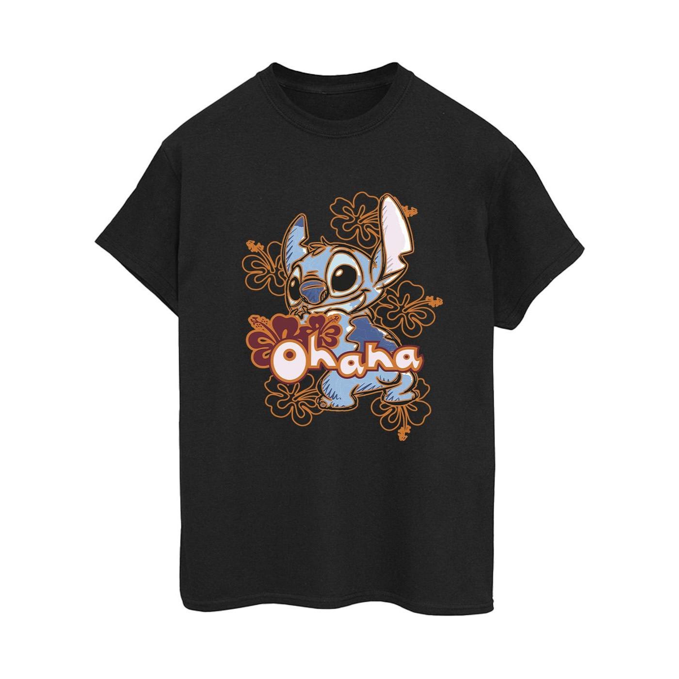 Ce T-shirt présente un graphique ludique de Stitch de Lilo & Stitch de Disney, entouré d'accents floraux et du mot « Ohana ». Le col rond classique et les manches courtes en font un ajout polyvalent à toute garde-robe décontractée.