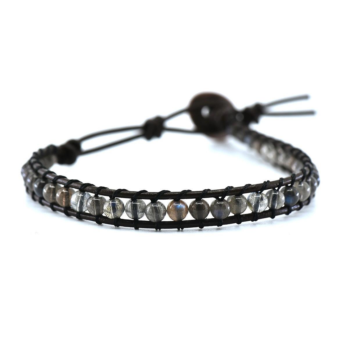 Balibay, Bracelet en cuir Ceylin avec pierres de labradorite de 4 mm