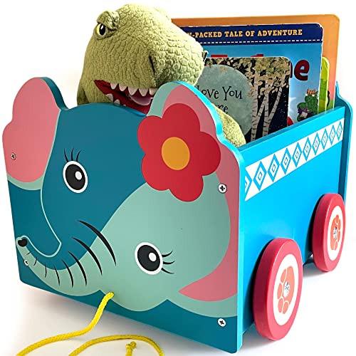 Activity-board Coffre à jouets en bois éléphant | Wagon de train 2 en 1 et boîte de rangement à roulettes pour chambre d'enfant/chambre | Coffre de bébé pour jouets d'enfants, organisateur de jeux/livres