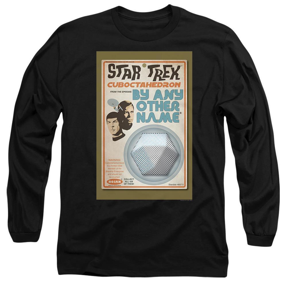 Ce t-shirt présente un graphique inspiré de Star Trek: The Original Series, spécifiquement l'épisode 51, «By Any Other Name». Le design met en valeur une publicité de style vintage pour un «Cuboctahedron» avec des images du Capitaine Kirk et de Spock.