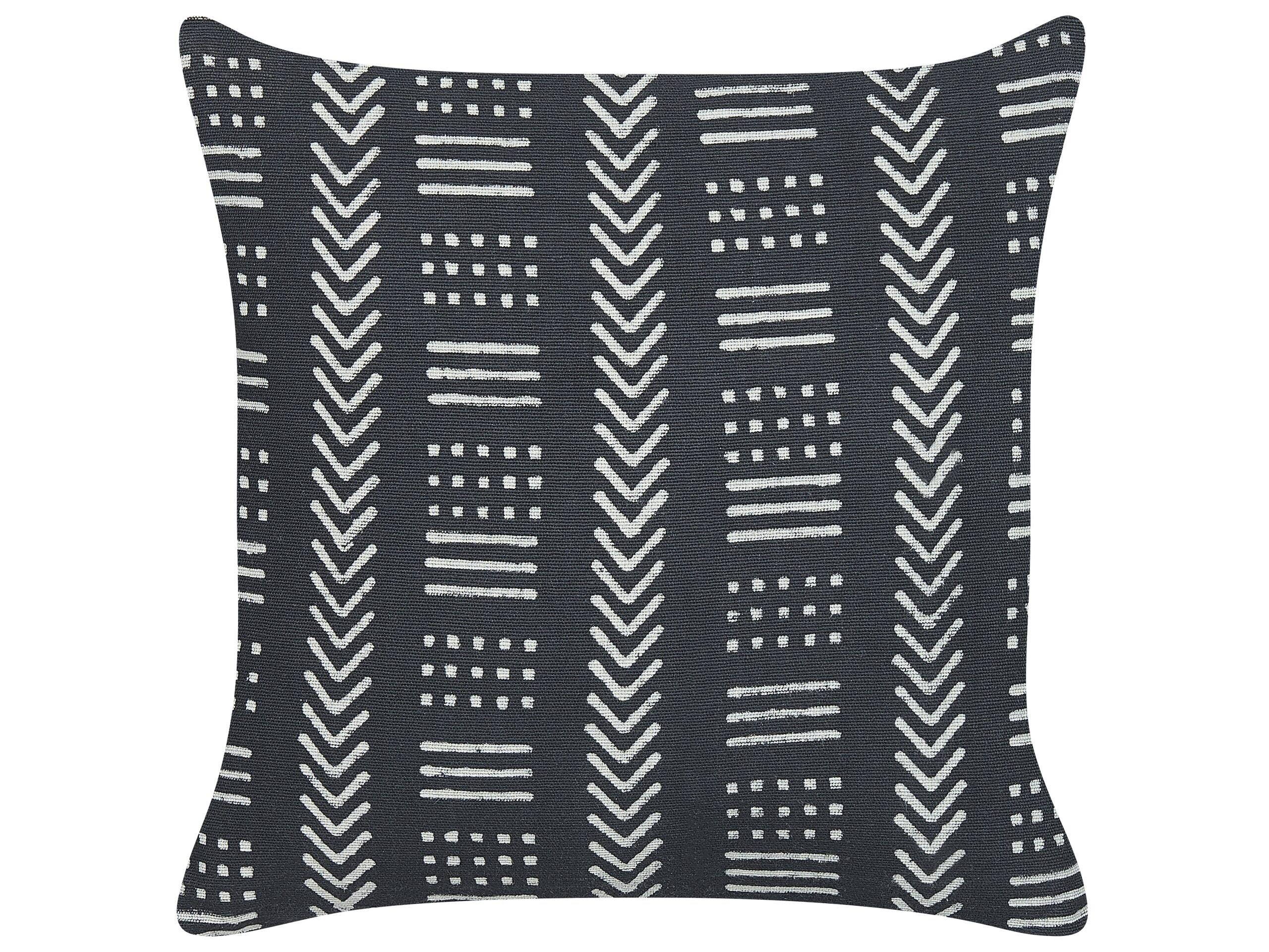 Coussin décoratif. Créez un look élégant et minimaliste avec cet élégant coussin. Affichant un motif géométrique simple sur un fond noir, il s'intègre parfaitement à tous les styles d'intérieur modernes, scandinaves et bohèmes. Les coussins sont livrés avec un rembourrage épais et une housse équipée d'une fermeture éclair. Le motif a été réalisé à la main à l'aide de blocs d'impression spéciaux, ce qui signifie que chaque coussin est unique.