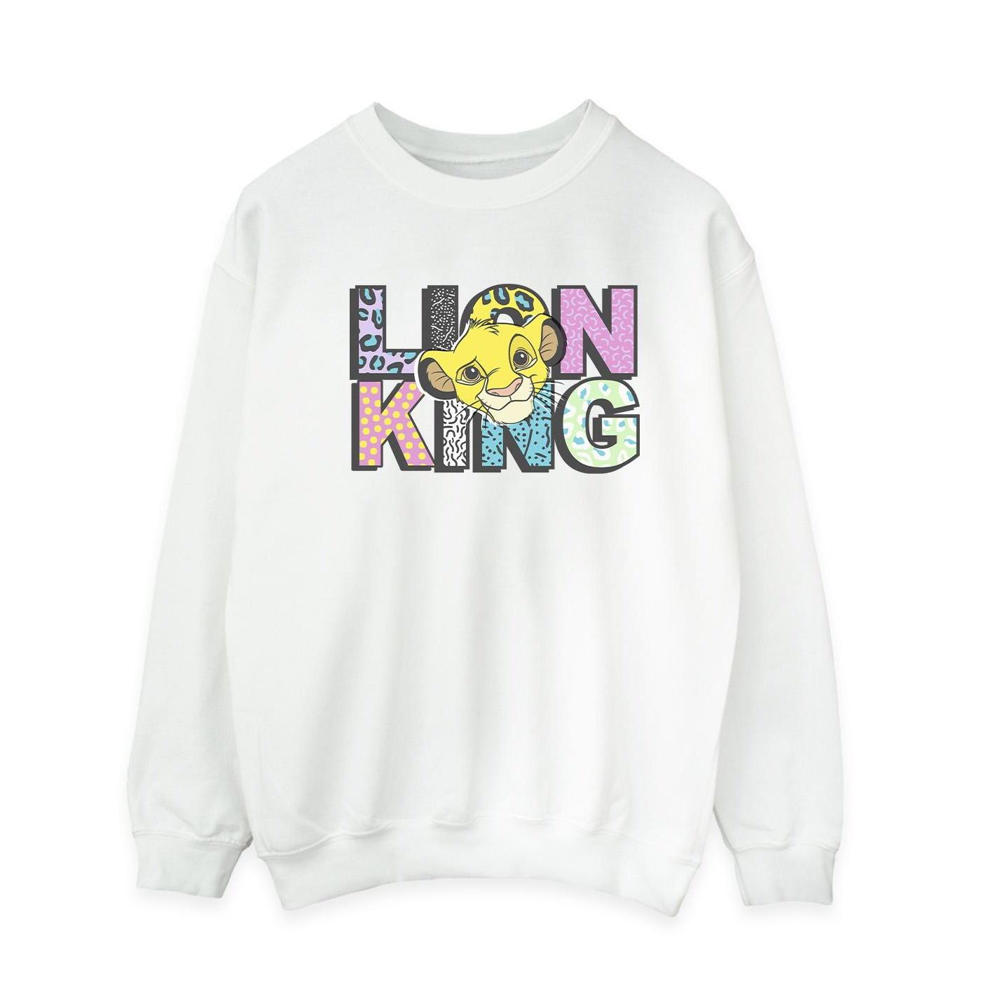 Ce sweatshirt présente un imprimé graphique vibrant du Roi Lion, ce qui en fait un ajout amusant et élégant à toute garde-robe. Le design met en valeur Simba avec le texte emblématique 'Lion King' dans un motif ludique et coloré.