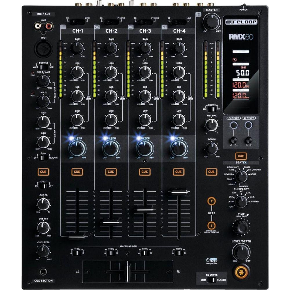 Reloop RMX-60. Quantité de canaux: 5 canaux, Gamme de fréquence: 20 - 20000 Hz. Largeur: 320 mm, Profondeur: 386,7 mm, Hauteur: 107,5 mm