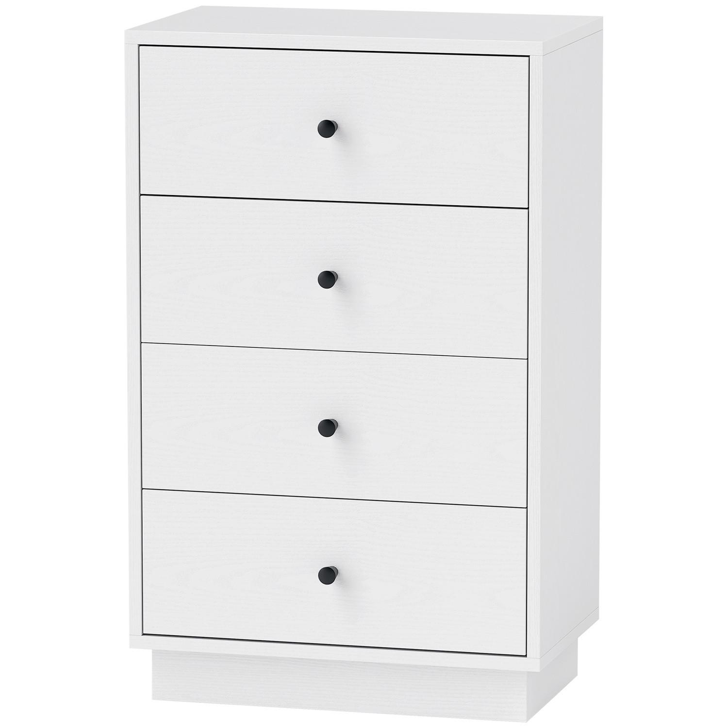 Mettez de l'ordre avec style grâce à cette commode à quatre tiroirs. Cette commode chic offre quatre compartiments spacieux pour tout, des leggings aux essentiels du quotidien. Une solution de rangement parfaite pour n'importe quelle pièce, sa construction robuste assure la stabilité, tandis que son design blanc élégant avec des poignées noires ajoute une élégance moderne à votre espace.
