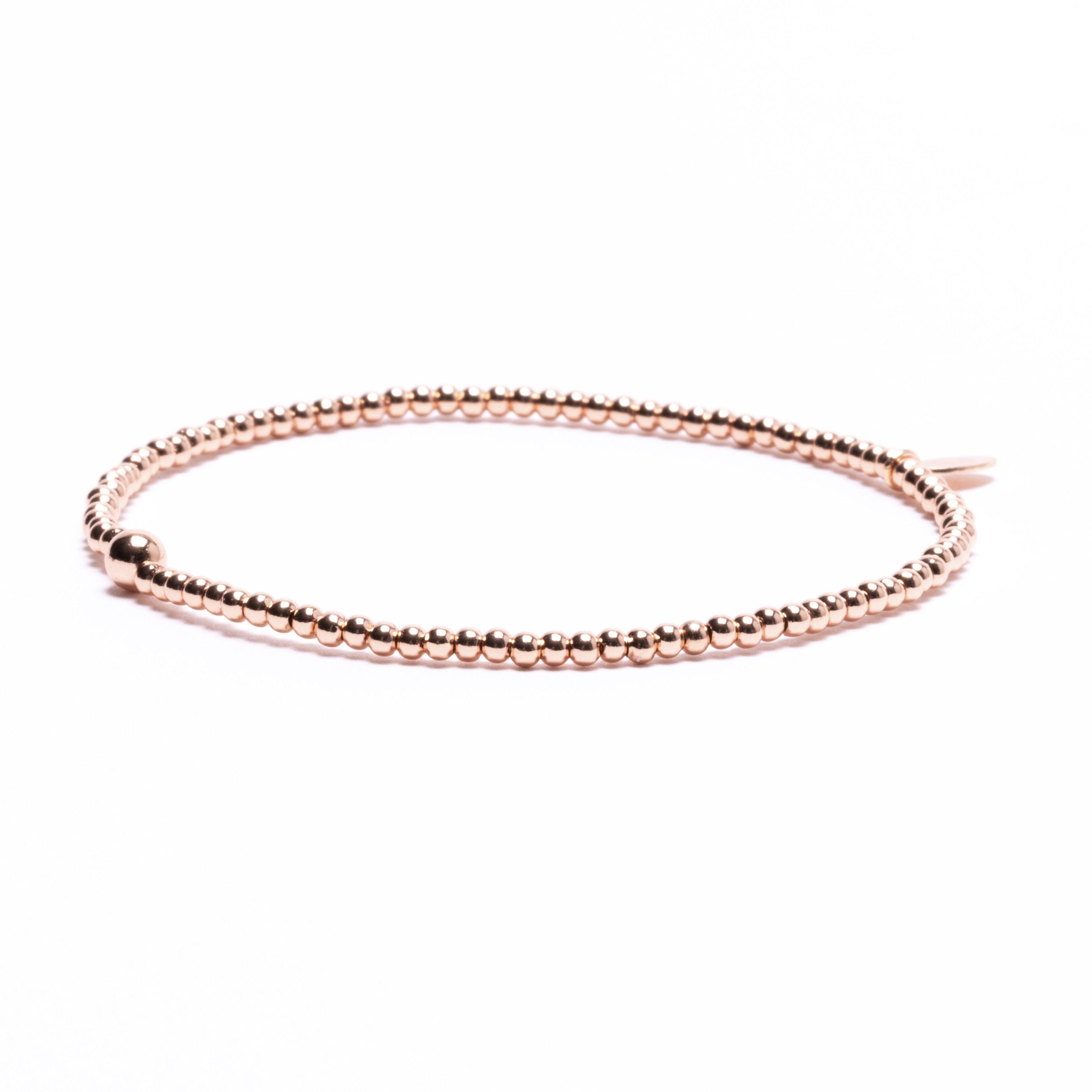 Ce bracelet féminin, composé de perles en argent sterling 925 plaqué or rose, épouse délicatement votre poignet grâce à son élastique. Porté seul ou en accumulation, il apporte une touche chaleureuse et élégante à toutes vos tenues.