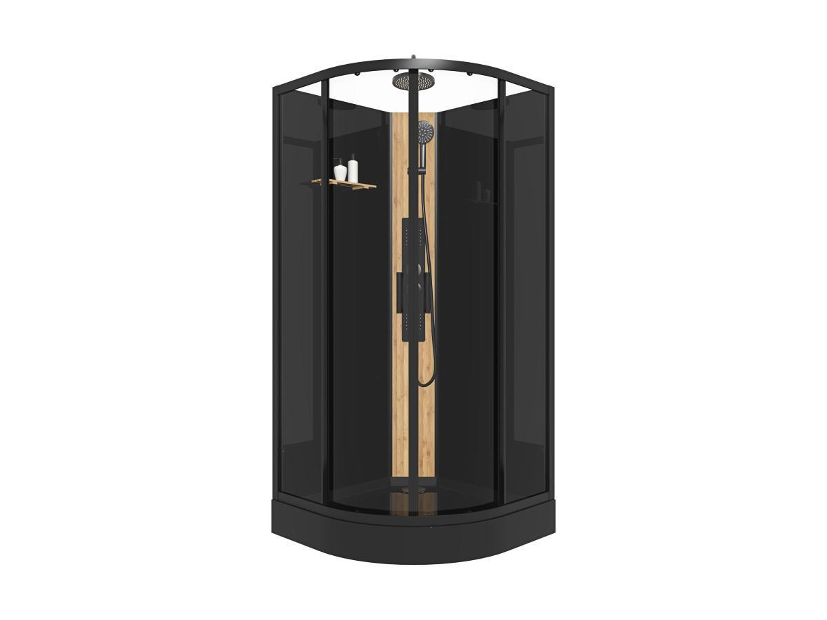 SHOWER DESIGN, Cabine de douche hydromassante en quart de cercle avec panneau en bambou - Noir - L90 x l90 x H225 cm - TILOMA