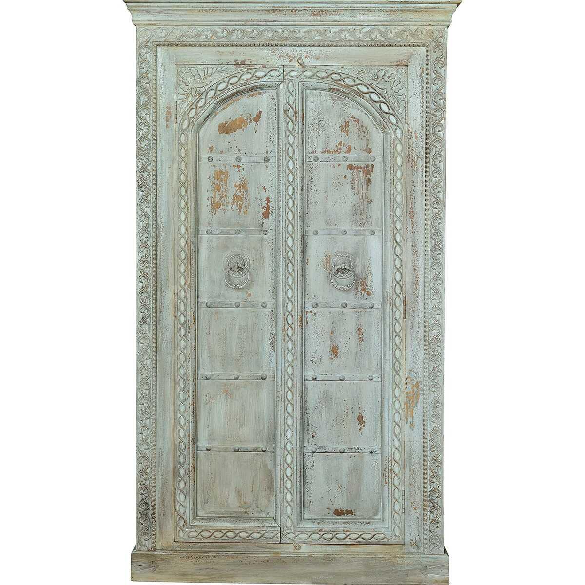 Armoire en bois de manguier avec 2 portes, 3 étagères intérieures. Dimensions des portes : 168 x 40 cm. Hauteur des étagères : 40 cm. Finition vintage.
