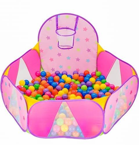 Piscine à balles colorée pour garçons et filles Cymbale à balles avec panier de basket pour bébés. Jette. Grâce à la piscine pop-up, jouez partout, le bain à balles pliable fait de la chambre des enfants une aire de jeux intérieure. Piscine ludique pour enfants à partir de 1 an lancer, attraper, tobent : parfaite pour un petit enfant. La piscine à jouets pop-up est rapide à installer : il suffit de la sortir du sac et le tour est joué. Une fois emballée, la piscine pour enfants est plate et peu encombrante. Idéal pour les déplacements * Piscine à balles amusante pour l'intérieur et l'extérieur La piscine à balles est idéale pour les premiers pas : avec ses bords doux en tissu, elle ne fait pas mal aux chutes. Les tout-petits peuvent jouer ici dans la pataugeoire, grâce au bord haut, les balles en plastique restent dans la piscine.