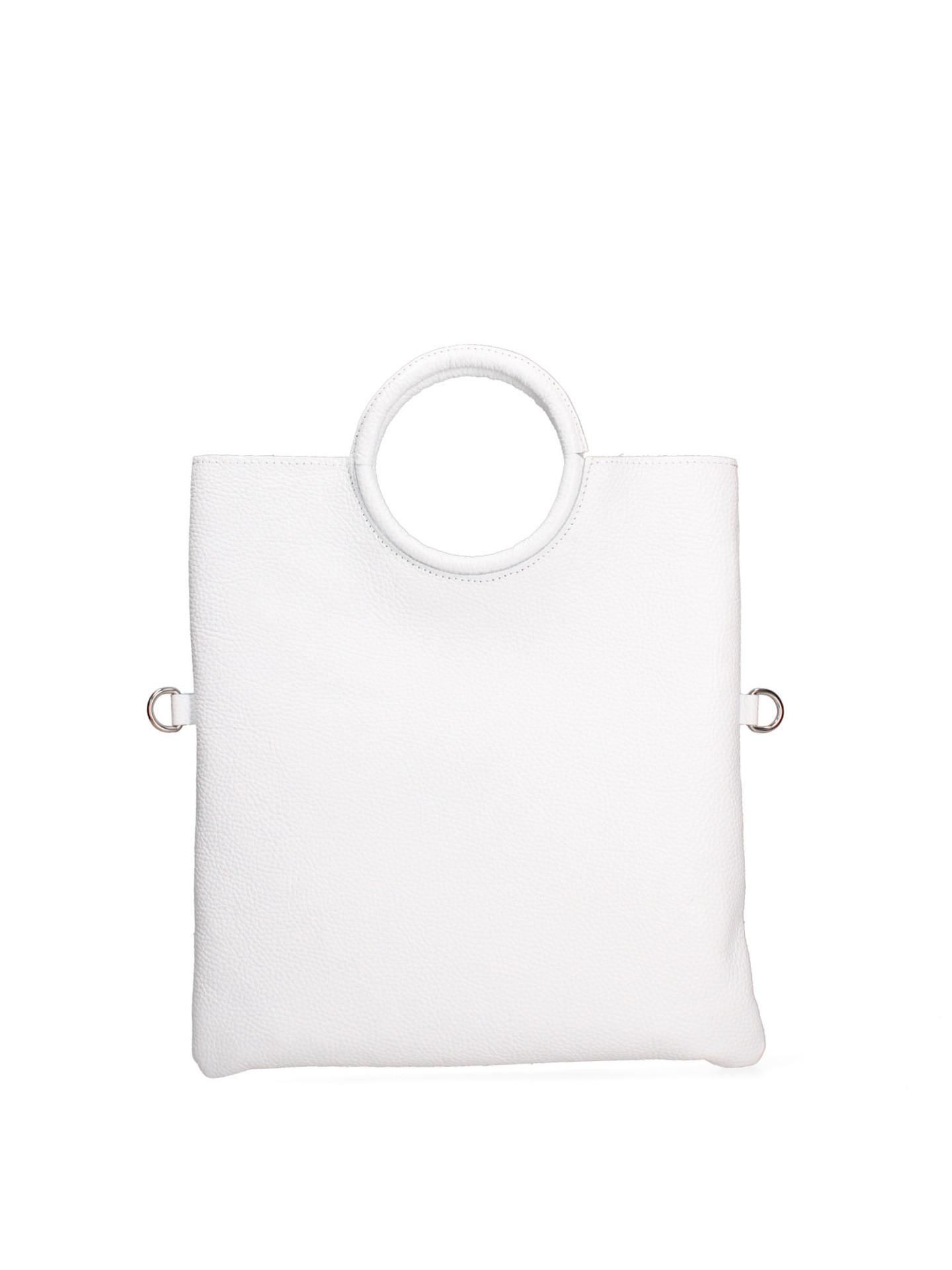 Ce sac à main pour femme, fabriqué en Italie, est doté d'une poignée ronde unique, offrant un accessoire distinctif et élégant. Son design est à la fois moderne et fonctionnel, adapté à diverses occasions.