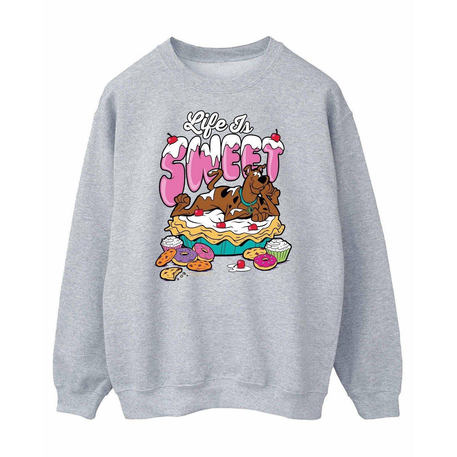 Ce sweat-shirt présente un graphique ludique de Scooby-Doo se relaxant dans une tarte, entouré de diverses friandises et de la phrase « Life Is Sweet ». C'est un ajout confortable et élégant à toute garde-robe décontractée.