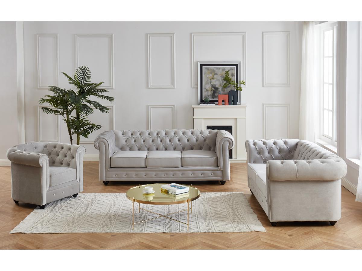 Vente-unique, Canapé 3+2+1 places CHESTERFIELD Velours clair
