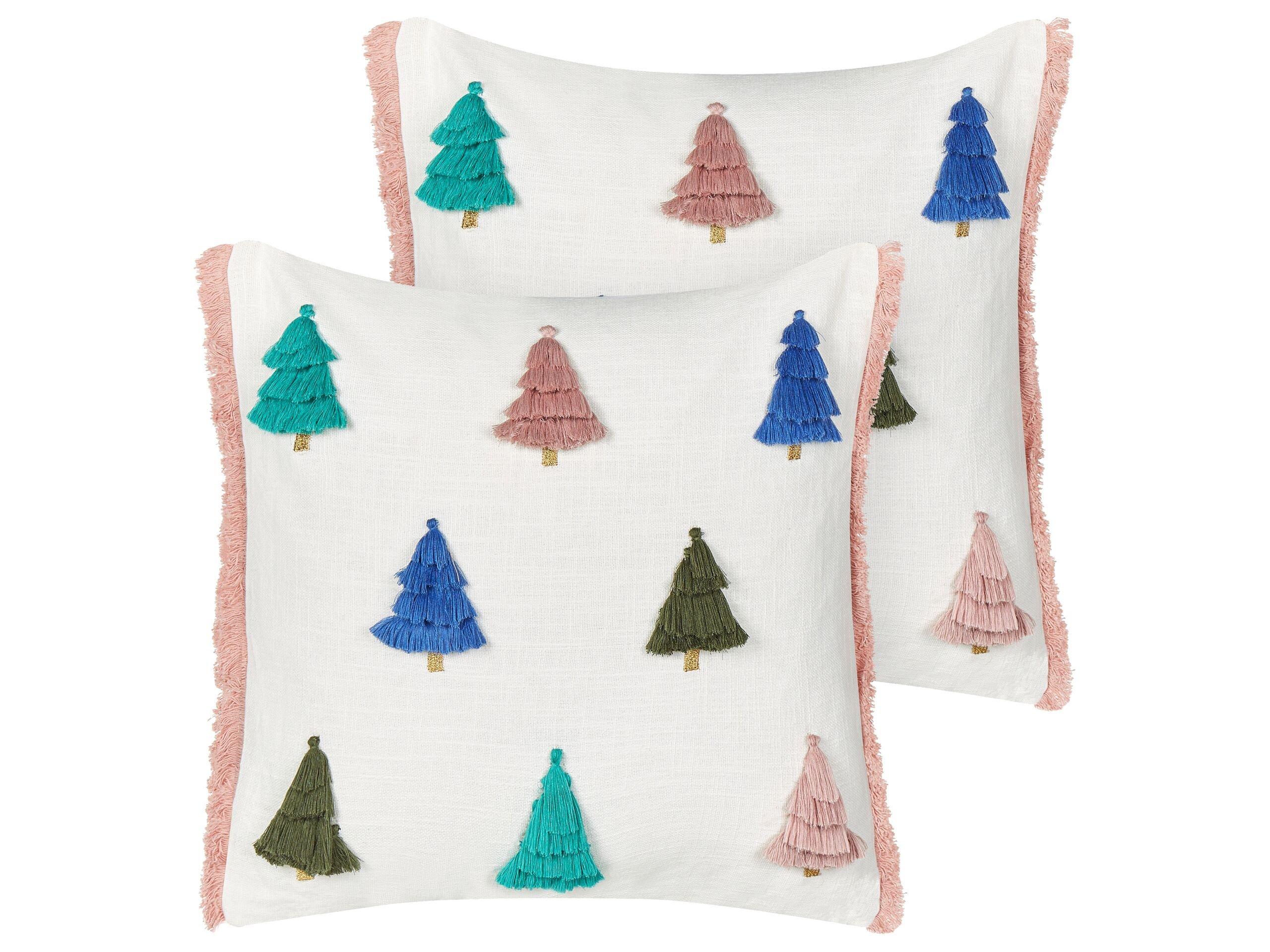 Coussins décoratifs pour Noël. Adoptez l'esprit festif avec ce lot de 2 coussins carrés de Noël, un délicieux mélange de confort et de charme des fêtes. Les housses en coton, ornées d'un joyeux motif de sapin de Noël, rayonnent d'une joie saisonnière. Les franges sur les bords ajoutent une touche de fantaisie et d'espièglerie. Méticuleusement confectionné à la main, chaque coussin est un chef-d'œuvre unique. Les housses amovibles sont faciles à entretenir et vous invitent à profiter de la magie de Noël dans le confort et le style.
