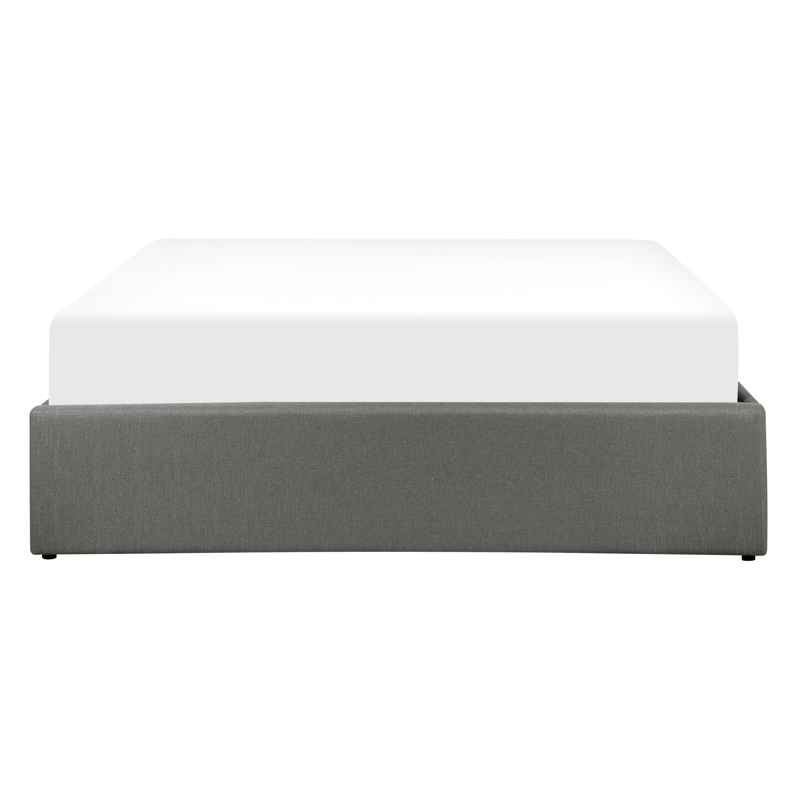 Lit avec rangement. Ajoutez une touche d'élégance à votre chambre à coucher et profitez d'une nuit de sommeil parfaite grâce à ce cadre de lit classique. Habillé d'un revêtement en lin doux et durable, le lit est doté d'un sommier à lattes qui garantit une répartition uniforme du poids du corps. Ce cadre est également équipé d'un espace de rangement pratique et spacieux, offrant suffisamment de place pour tous vos draps et oreillers. Ce lit est proposé dans un format compact et sans tête de lit supplémentaire, ce qui en fait la solution idéale pour les chambres à plafond bas. Grâce à son design classique et universel, cette pièce s'intègre facilement à tout intérieur traditionnel et contemporain.