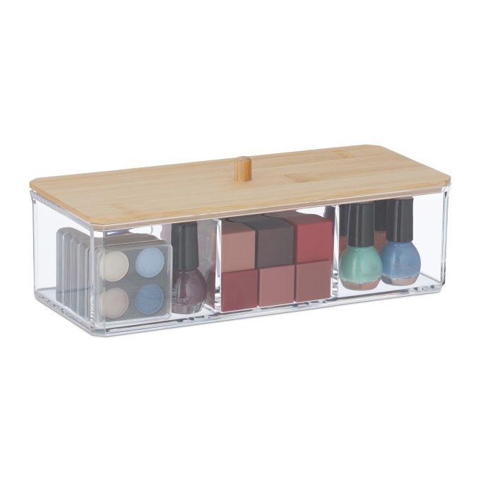 - Organisez vos cosmétiques grâce à trois compartiments spacieux pour un accès facile.