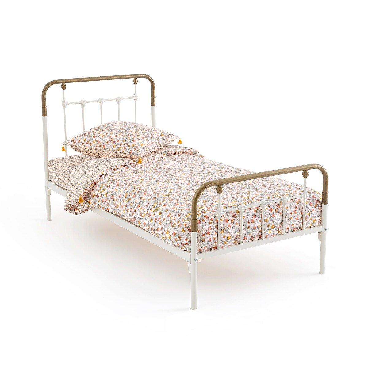 Le lit enfant à barreaux Asper. Inspiré des anciens lits, il revient réactualisé dans une association de blanc et de laiton.