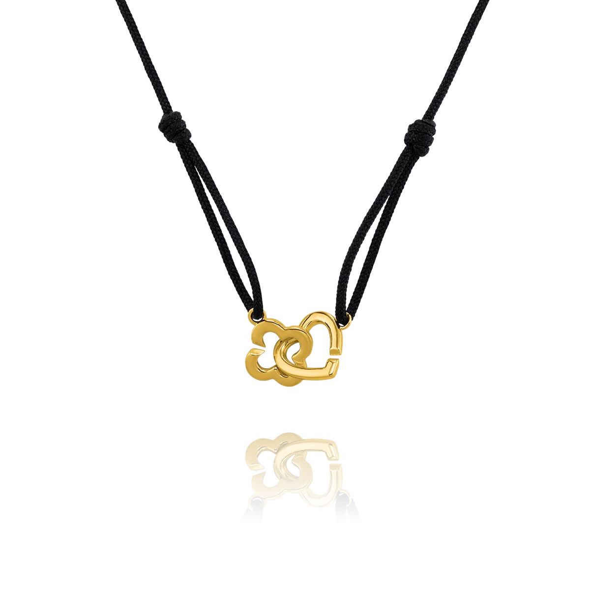 Alliant élégance et audace, ce collier en argent (3.15g) de la collection Passion est orné dun cœur et dun trèfle dorés entrelacés, suspendus à une cordelette noire.