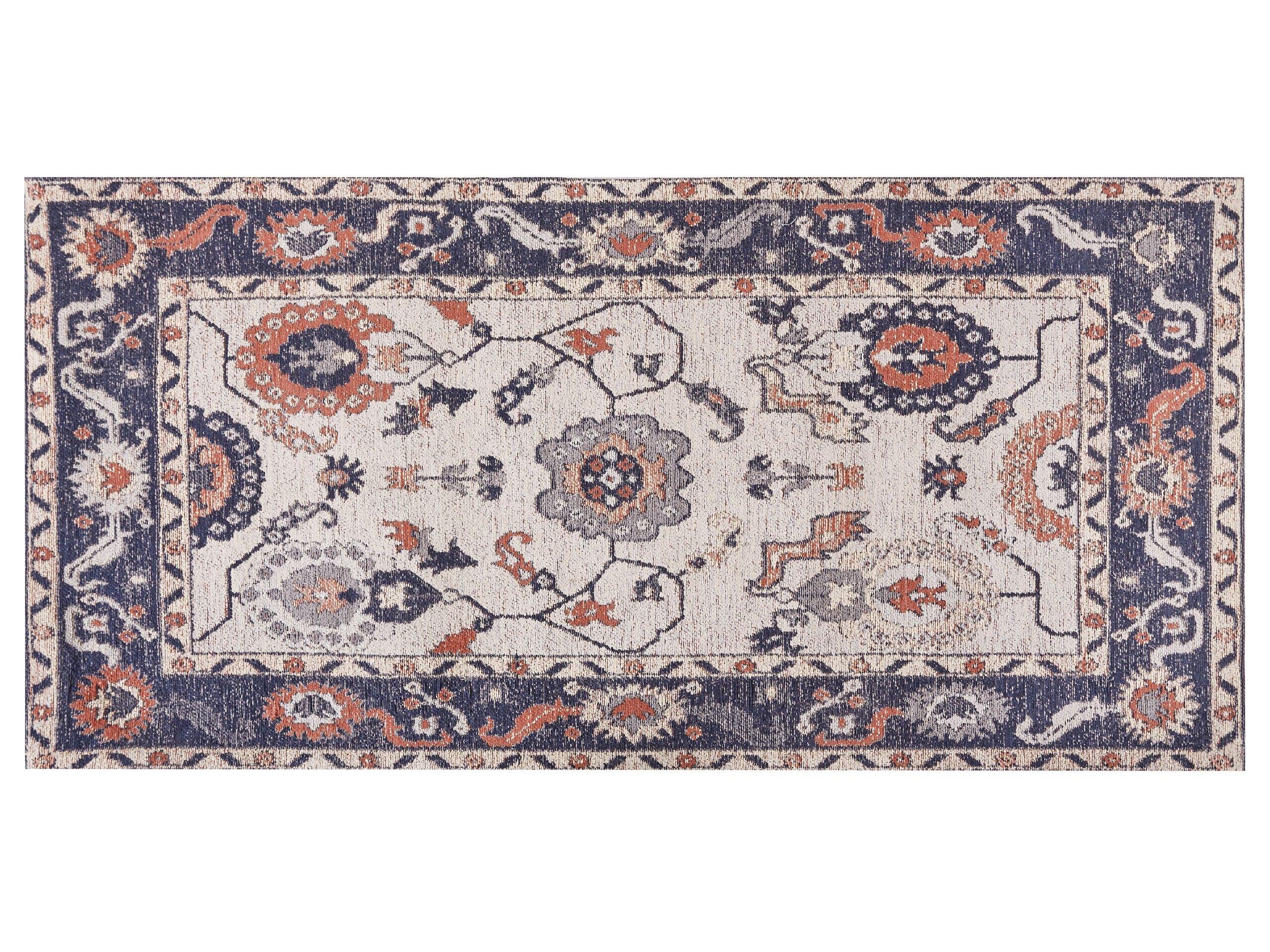 Tapis rectangle effet vieilli. Avec ce tapis coloré, votre espace de vie deviendra plus chaleureux. Il présente un motif qui attire l'attention, rappelant les motifs floraux orientaux. Fabriqué en coton et polyester, le tapis est très résistant et ne nécessite pas d'entretien quotidien pour durer de nombreuses années. Il est également très agréable sous les pieds, ce qui en fait un complément idéal pour les pièces d'inspiration vintage et bohème.