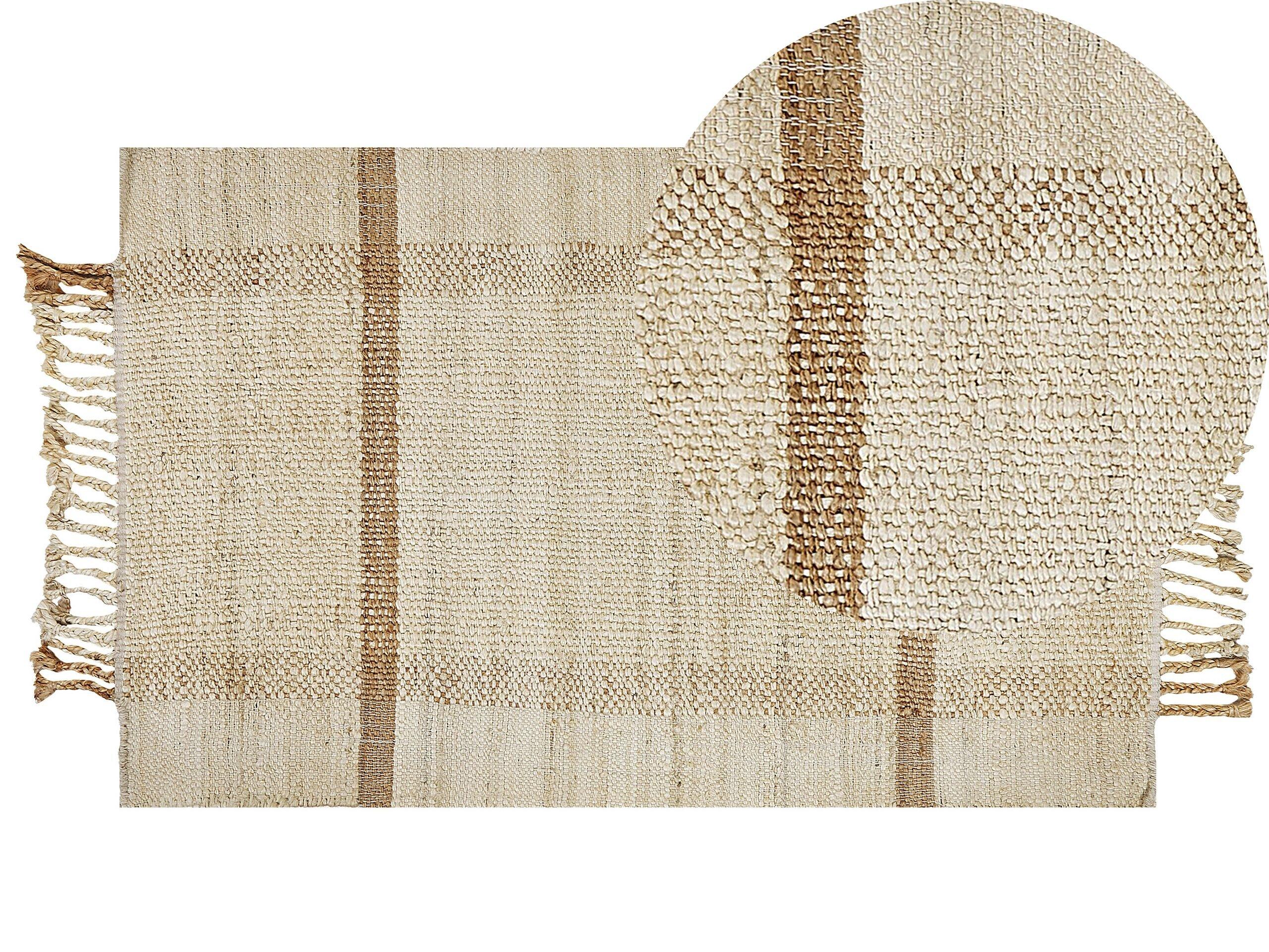 Tapis boho tissé à la main avec pompons. Cet élégant tapis rectangulaire sera le complément idéal de tout intérieur d'inspiration naturelle ou bohème. Fabriqué à la main en jute de haute qualité, il est extrêmement durable. Décoré de pompons et d'un motif géométrique, le tapis se marie bien avec des meubles et des accessoires en bois ou en rotin.