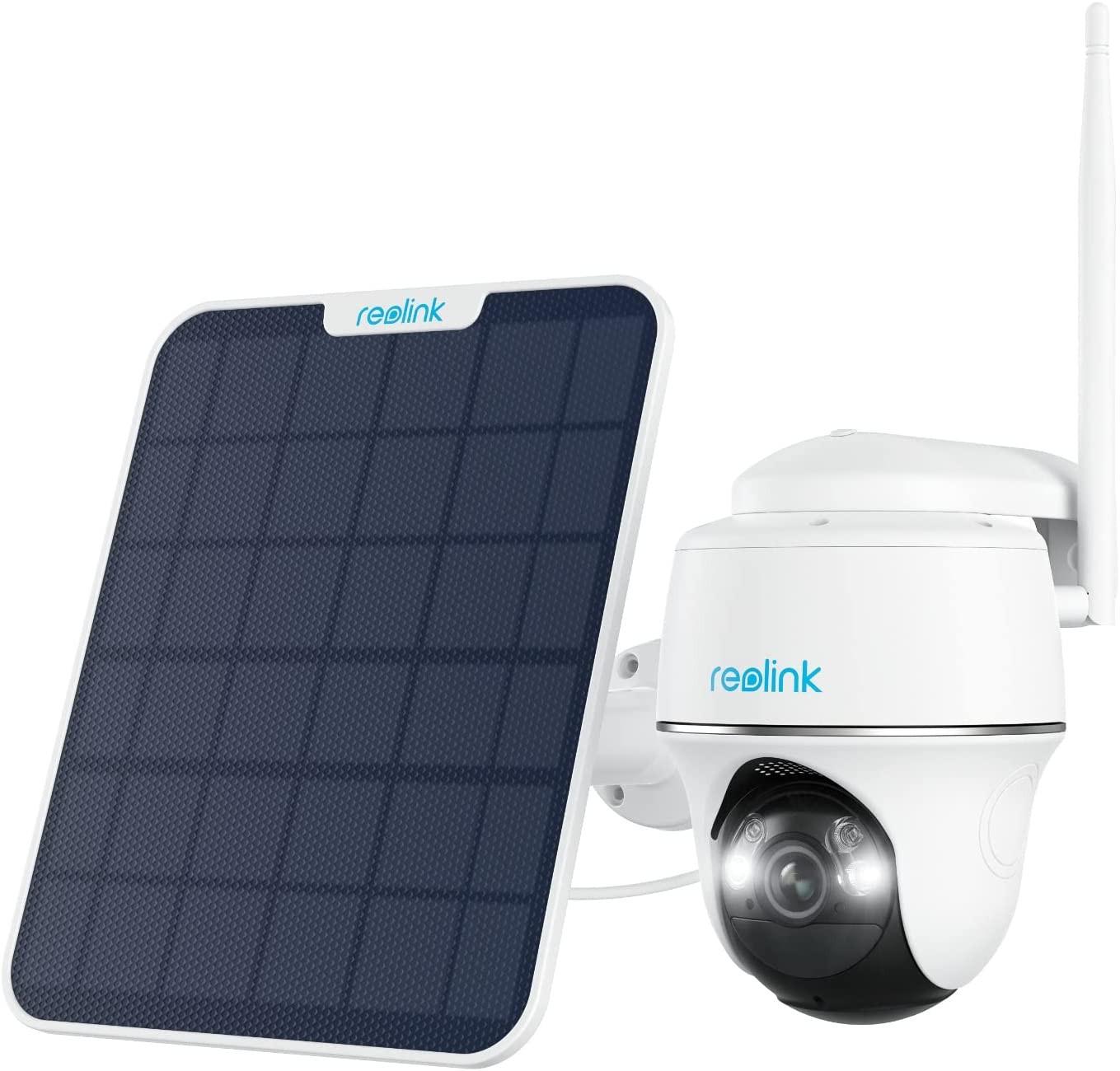 Reolink Argus PT avec panneau solaire 2, caméra WLAN orientable 100% sans fil pour l'extérieur. Restez 100% libre de câbles et d'enchevêtrement de câbles - Fonctionne parfaitement avec le panneau solaire 2 de Reolink et le WLAN 2,4 GHz/5GHz. Vue panoramique avec fonction d'inclinaison & de pivotement - Pivotez à distance, surveillez chaque coin de votre maison en temps réel.