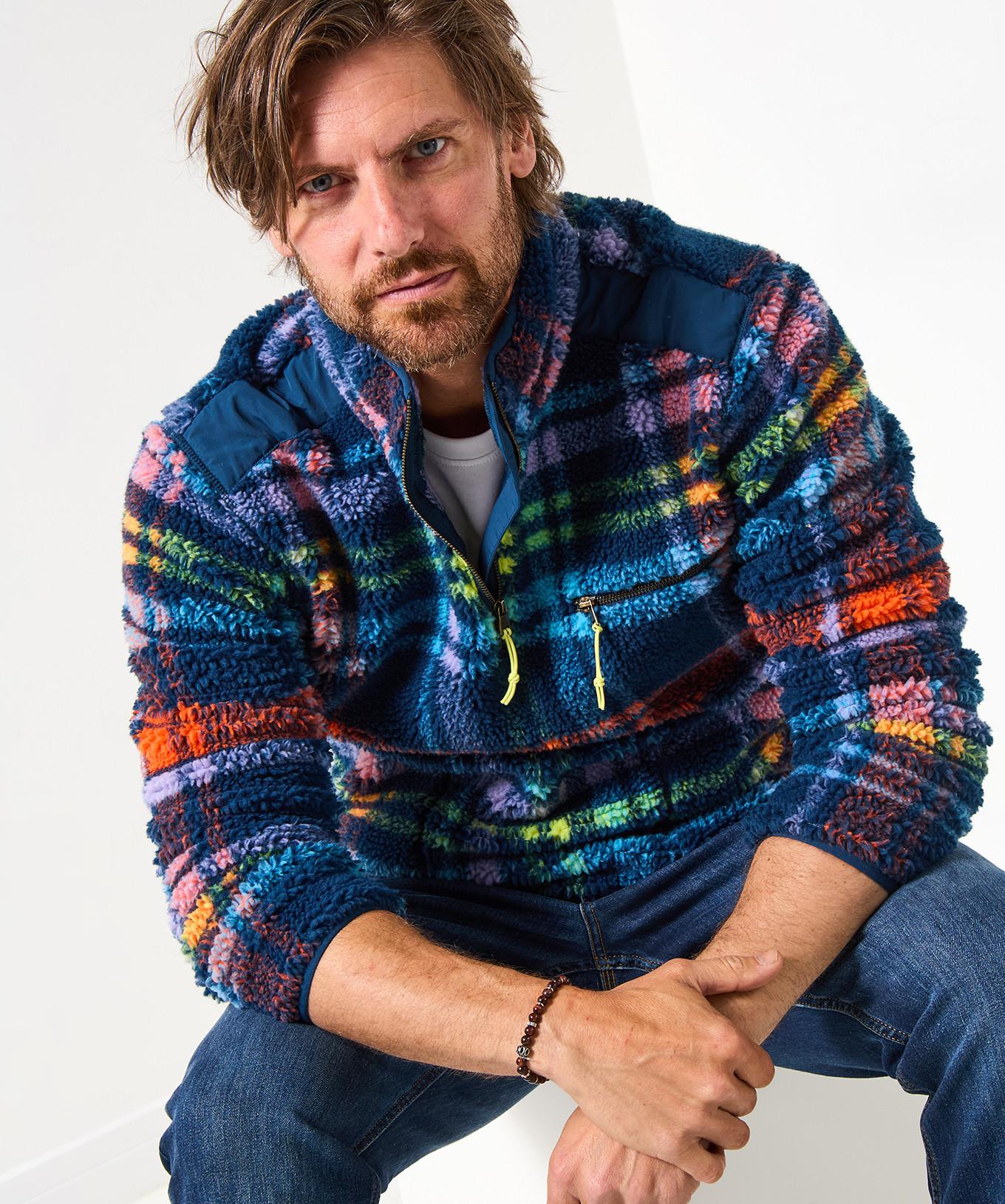 Ce haut en polaire présente un motif à carreaux vif et un col cheminée douillet, ce qui en fait un choix élégant et confortable. Le design comprend des détails pratiques pour un usage quotidien.