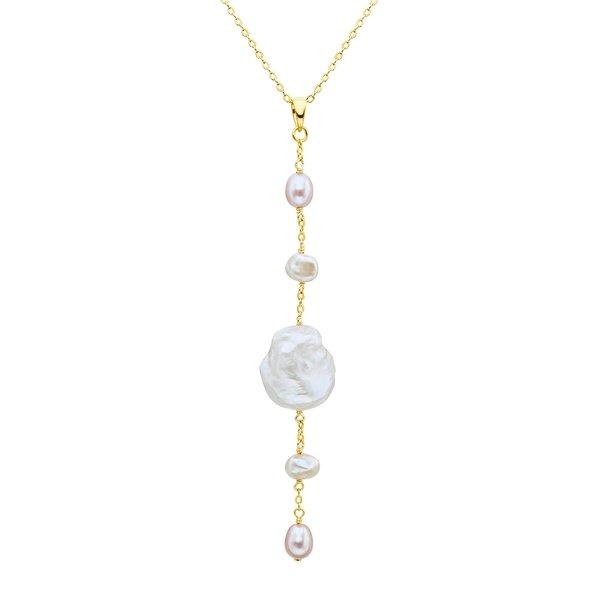 Aimez-vous porter des bijoux de perles? Ensuite, vous allez adorer ce collier de perles moderne de la marque Valero Pearls. Le pendentif est composé de perles baroques de différentes tailles - une conception qui joue avec l'irrégularité des perles et des scrobiles habilement mis en scène. La chaîne d'ancrage en filigrane est composée de 925 argent sterling et raffinée d'un parent jaune, qui s'harmonise merveilleusement avec la brillance mystérieuse des perles. Une fermoir de homard pratique et une chaîne d'extension assurent un ajustement de la longueur simple. Une pièce en informatique pour tous les amoureux de perles conscients de la tendance!