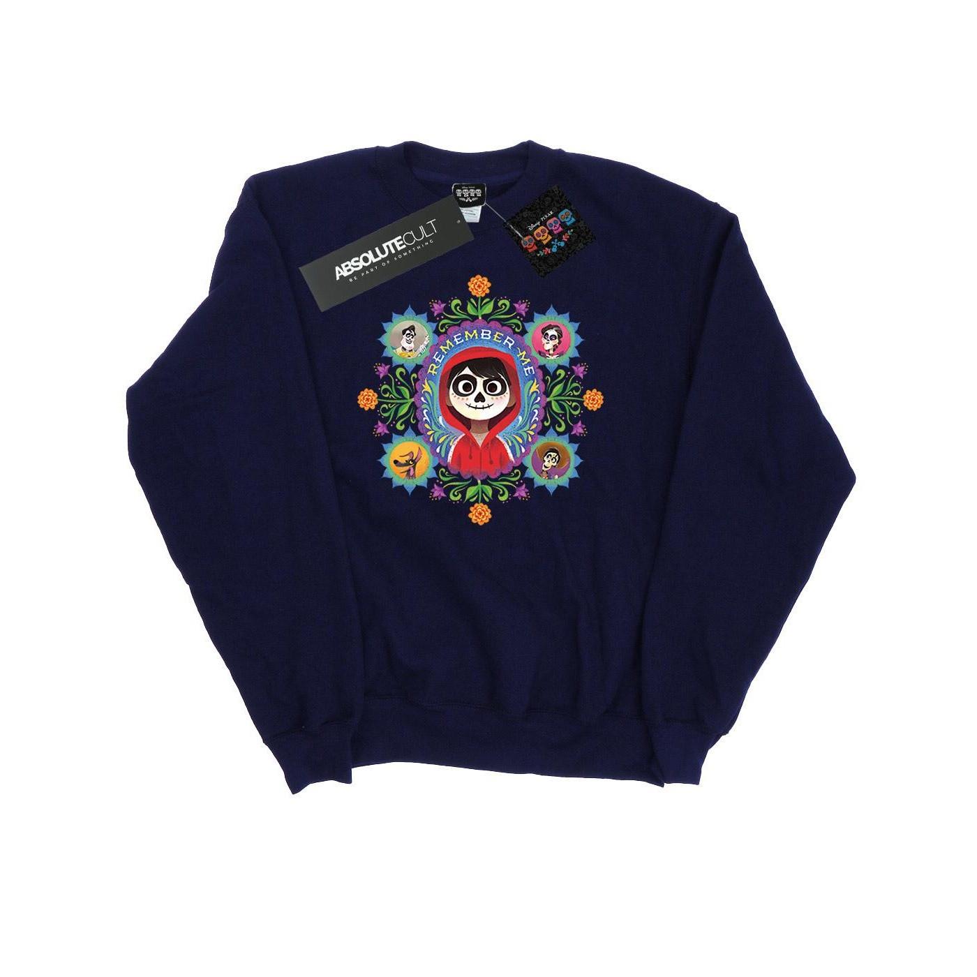 Ce sweatshirt Coco Remember Me présente un imprimé graphique vibrant inspiré du film d'animation bien-aimé. Le design met en scène Miguel avec sa peinture faciale de squelette, entouré d'un motif floral coloré et d'autres personnages du film. Ce sweatshirt confortable est un excellent moyen de célébrer l'esprit de Coco.