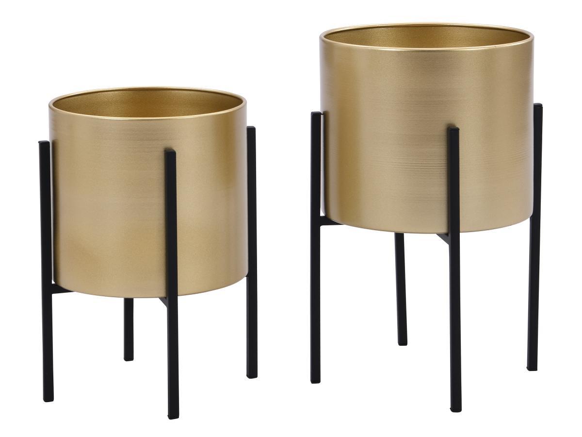 Vente-unique, Lot de 2 cache-pots sur pied en métal - D. 25 x H. 39 et D. 23 x H. 35.5 - Doré et noir - EDMEE