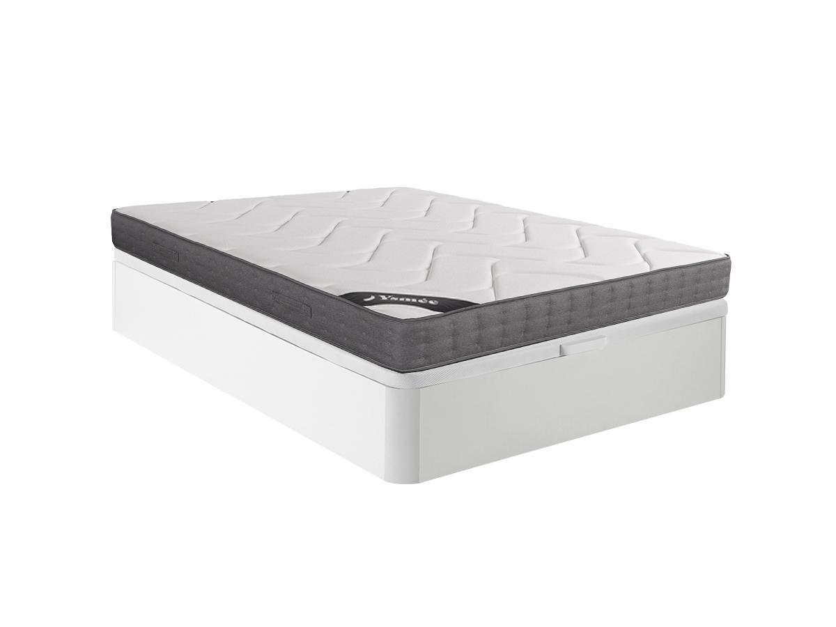 DREAMEA, Ensemble 160 x 200 cm sommier coffre blanc + matelas ressorts ensachés 5 zones accueil mémoire de forme ép.23cm - BABYLONE de YSMÉE