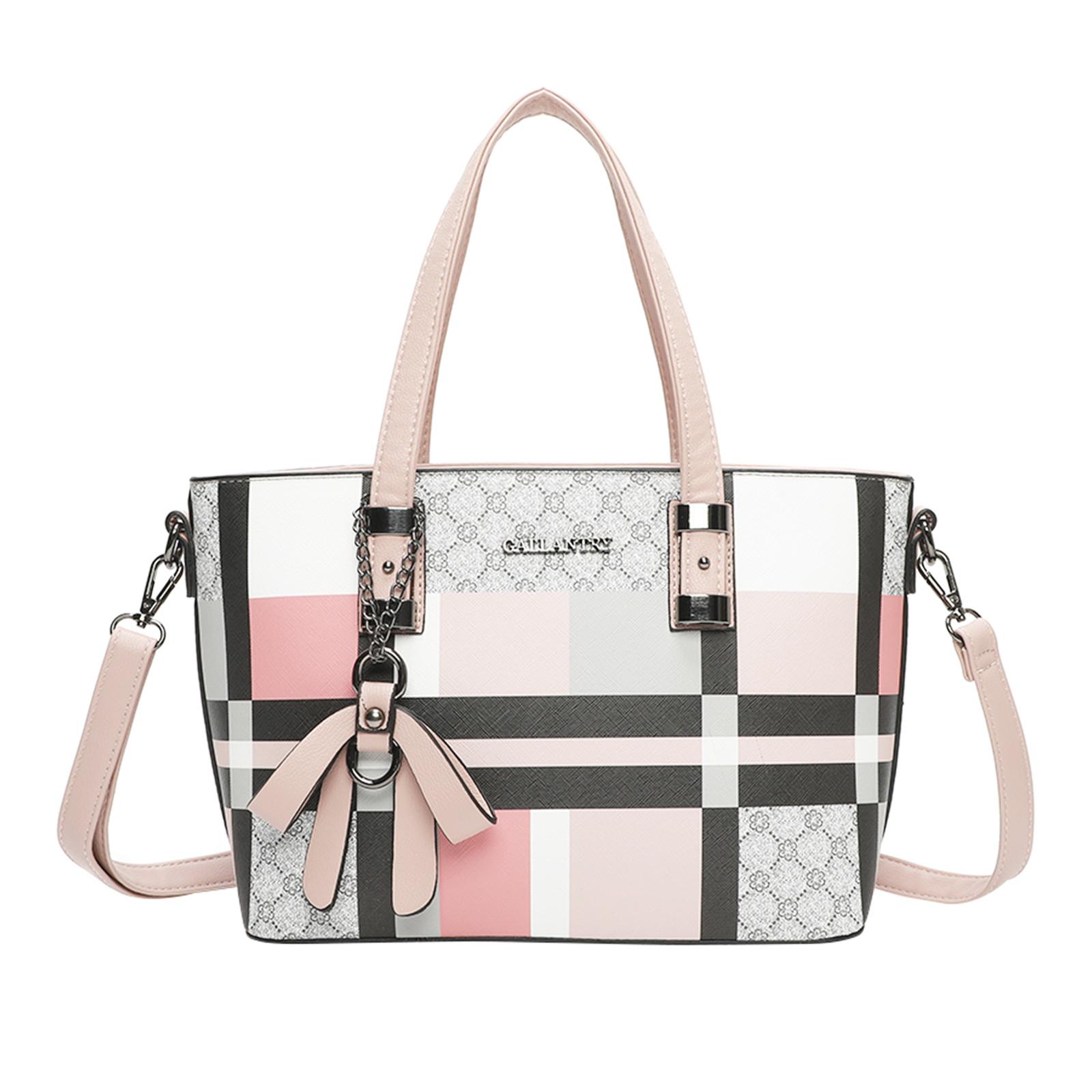 Ce sac cabas présente un motif à carreaux saisissant, combinant diverses couleurs et formes géométriques pour un look moderne et attrayant. Il est conçu à la fois pour le style et la praticité, offrant amplement d'espace pour les essentiels quotidiens.