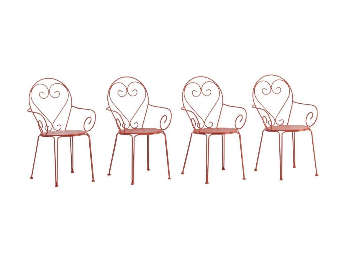 Vente-unique, Lot de 4 fauteuils de jardin empilables en métal façon fer forgéTerracotta GUERMANTES
