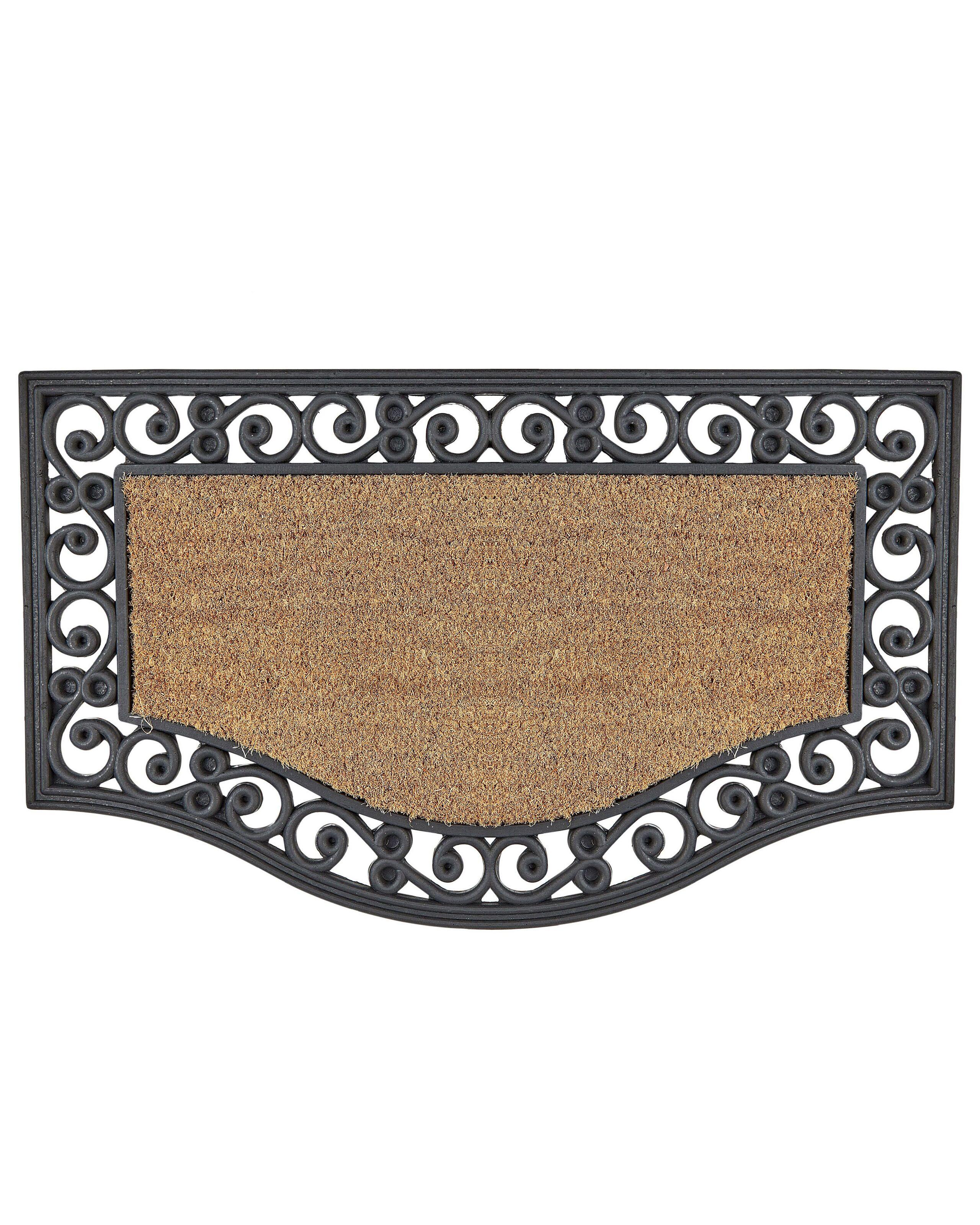 Tapis d'entrée avec support antidérapant. Égayez l'entrée de votre maison avec ce paillasson en fibre de coco au cadre élégant. Le centre naturel classique est entouré d'une bordure en caoutchouc noir aux motifs complexes, alliant durabilité et sophistication. Sa construction robuste assure un grattage efficace de la saleté, tandis que la base antidérapante offre une assise sûre, pour un paillasson à la fois pratique et élégant.