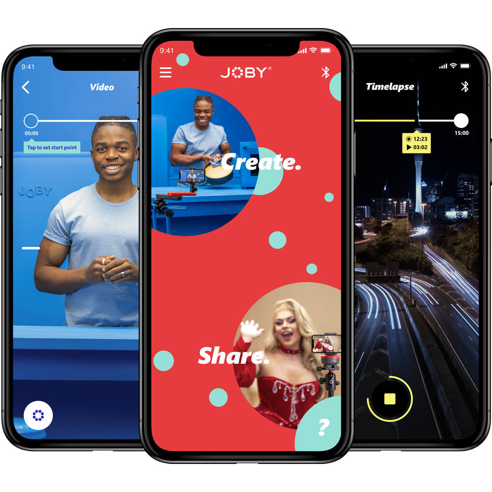 Le robuste support panoramique et dinclinaison pour les têtes de trépied pour smartphone JOBY Spin a été conçu pour faciliter la création de séquences accélérées et de vidéos en mouvement avec ton smartphone. Il permet un contrôle du mouvement sur deux axes, car il est possible de connecter deux têtes électroniques Spin compatibles Bluetooth avec un support pour smartphone (les têtes Spin et le support pour smartphone sont vendus séparément). Le support panoramique et dinclinaison présente une charge utile robuste de 650 g et peut être commandé de manière optimale via lapplication JOBY Motion pour iOS ou Android.
