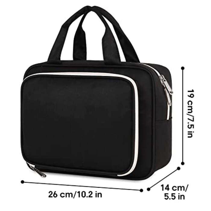 - Dimensions de 26 x 14 x 19 cm, permettant de ranger facilement les articles de toilette et de maquillage de voyage.