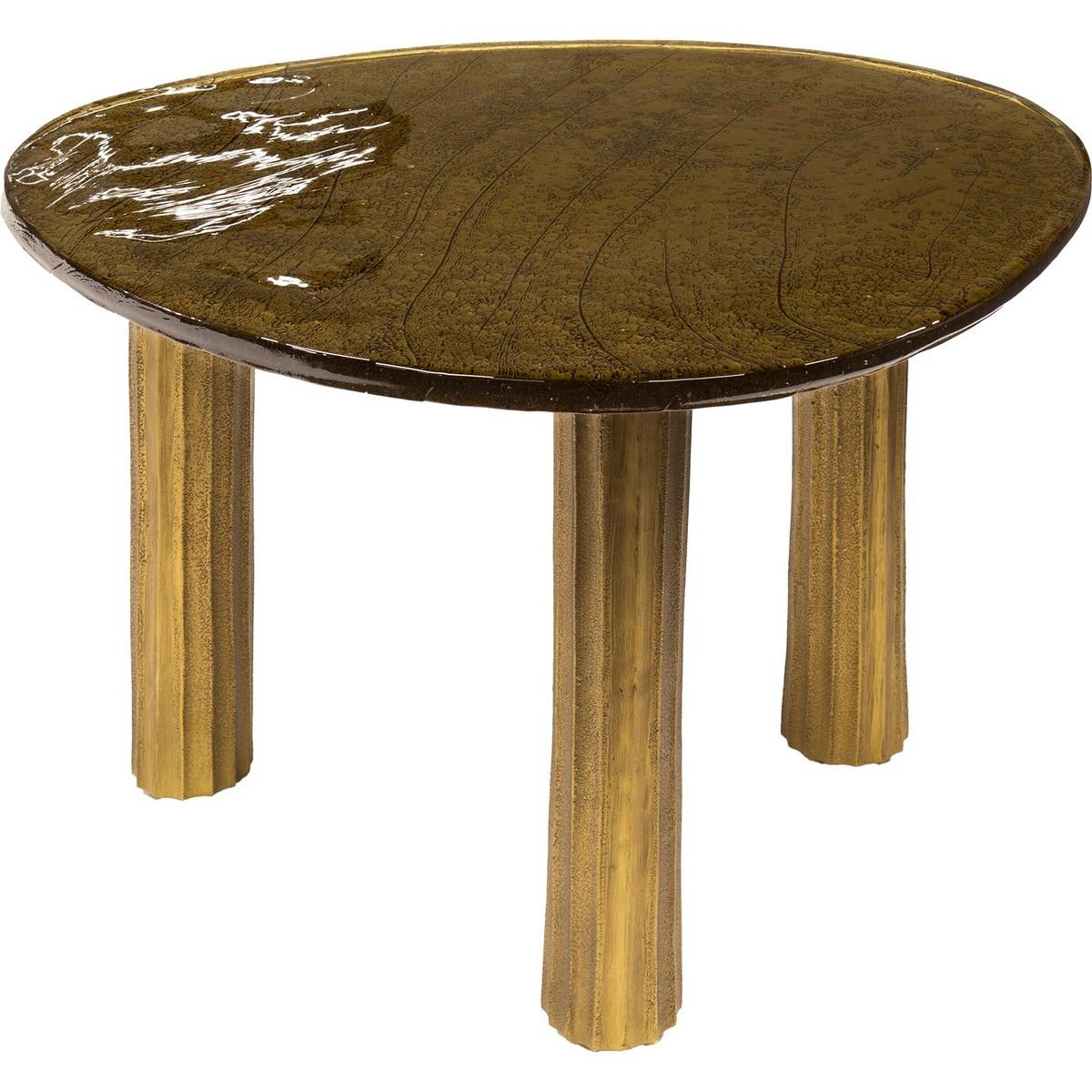 Plateau de table en verre étiré Piétement en aluminium moulé par sablage Disponible en or antique et en cuivre antique Disponible en trois tailles