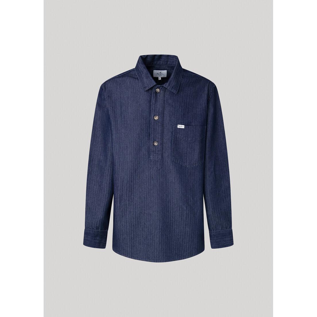 Cette chemise en denim présente un motif à chevrons et une coupe large, offrant un look confortable et élégant. Inspirée par la mode des années 80, elle est dotée d'un col français et d'une patte de boutonnage à trois boutons. Une poche plaquée sur la poitrine est ornée d'une étiquette logo Pepe Jeans.