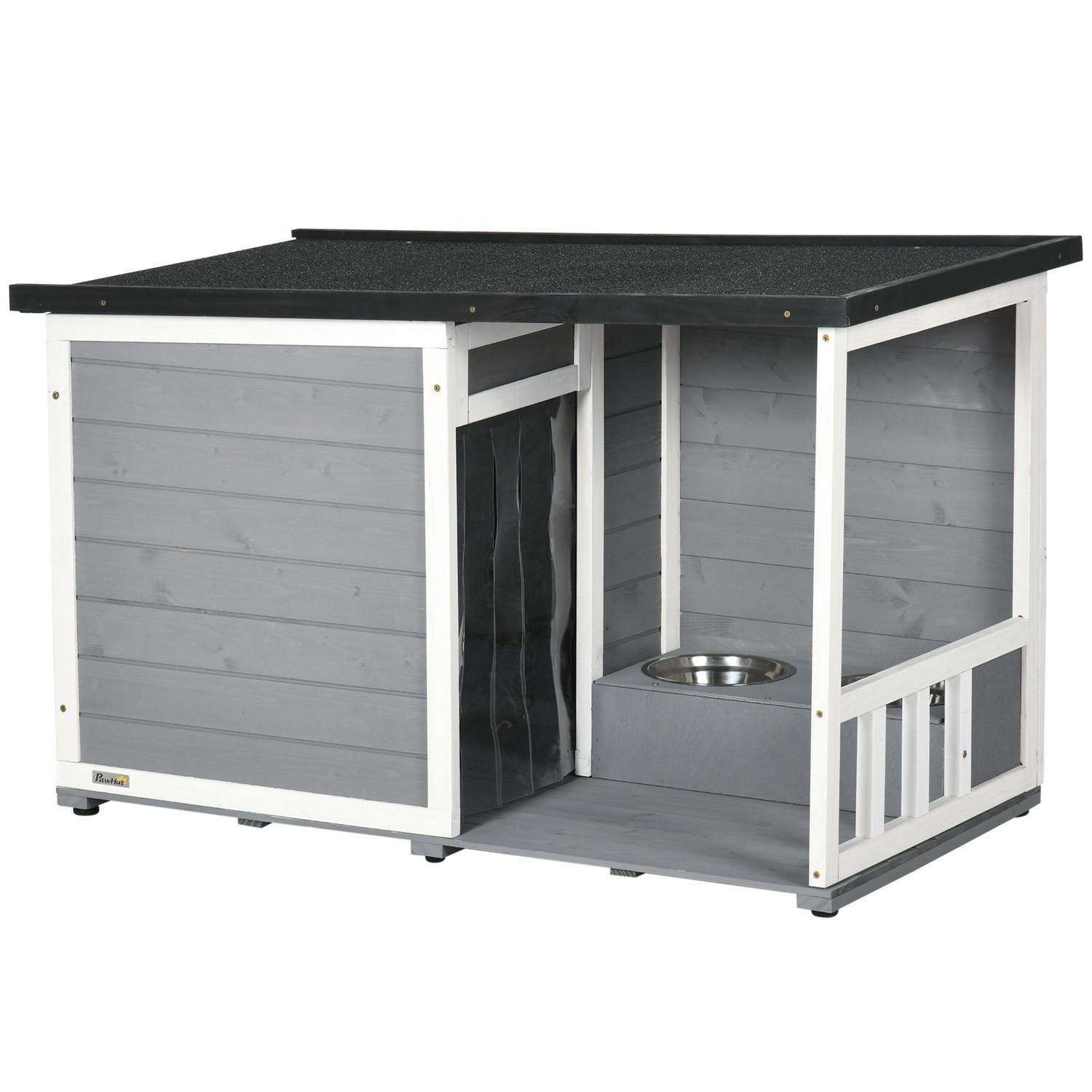 Northio, Niche Pour Chien Avec Terrasse En Bois De Sapin Avec 2 Gamelles Et Toit En Asphalte, Résistante Aux Intempéries, Gris, 103 X 62 X 60-66 Cm